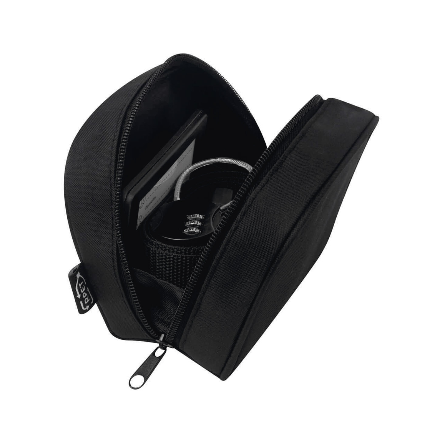PLASTICO RECICLADO ESTUCHE, METAL CANDADO, POLIESTER CINTA, PLASTICO IDENTIFICADOR