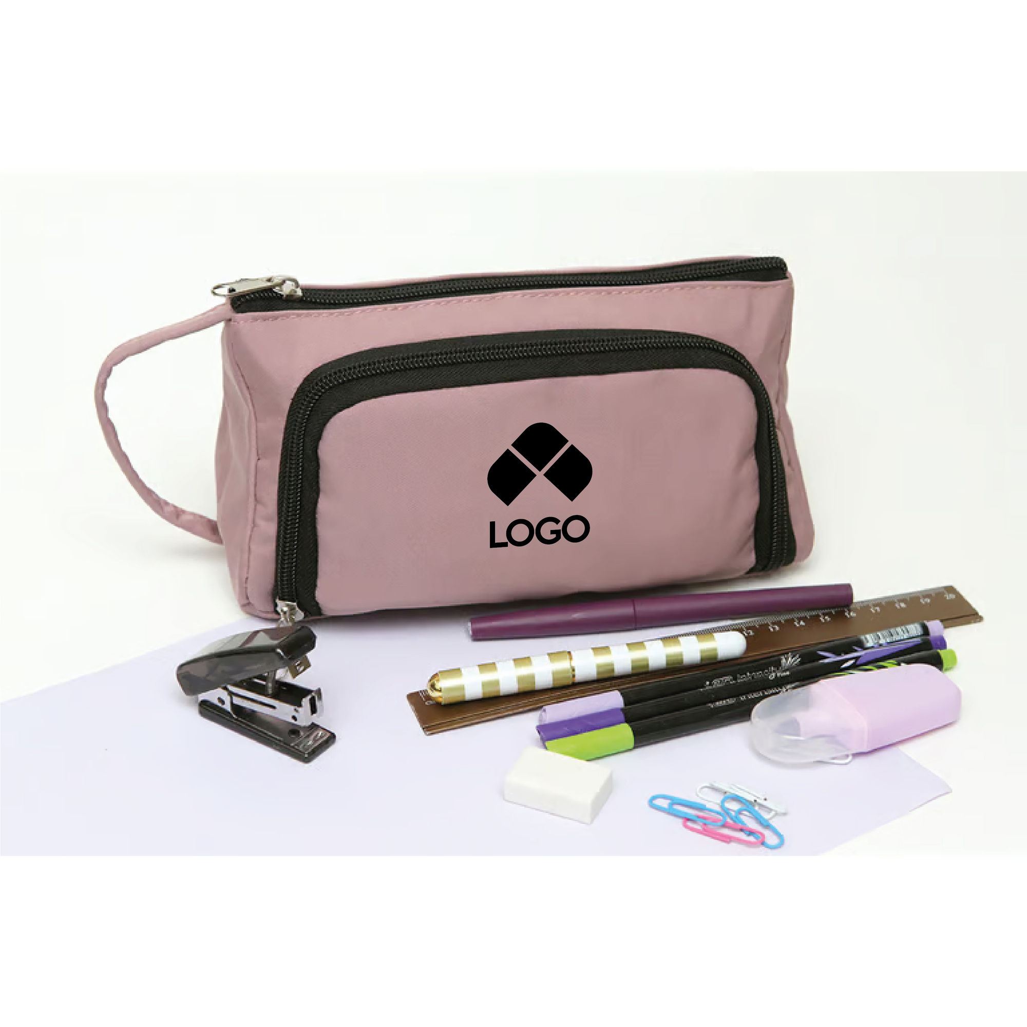 BOLSA TIPO LAPICERA FABRICADA EN POLIESTER, CON FORRO DE POLIESTER IGUALMENTE. CUENTA CON UN COMPARTIMENTO PRINCIPAL CON CREMALLERA, Y UNA SEGUNDA CREMALLERA AL FRENTE PARA ACCESO RAPIDO. CUENTA CON UN ASA DELGADA PARA MEJOR MANIPULACION