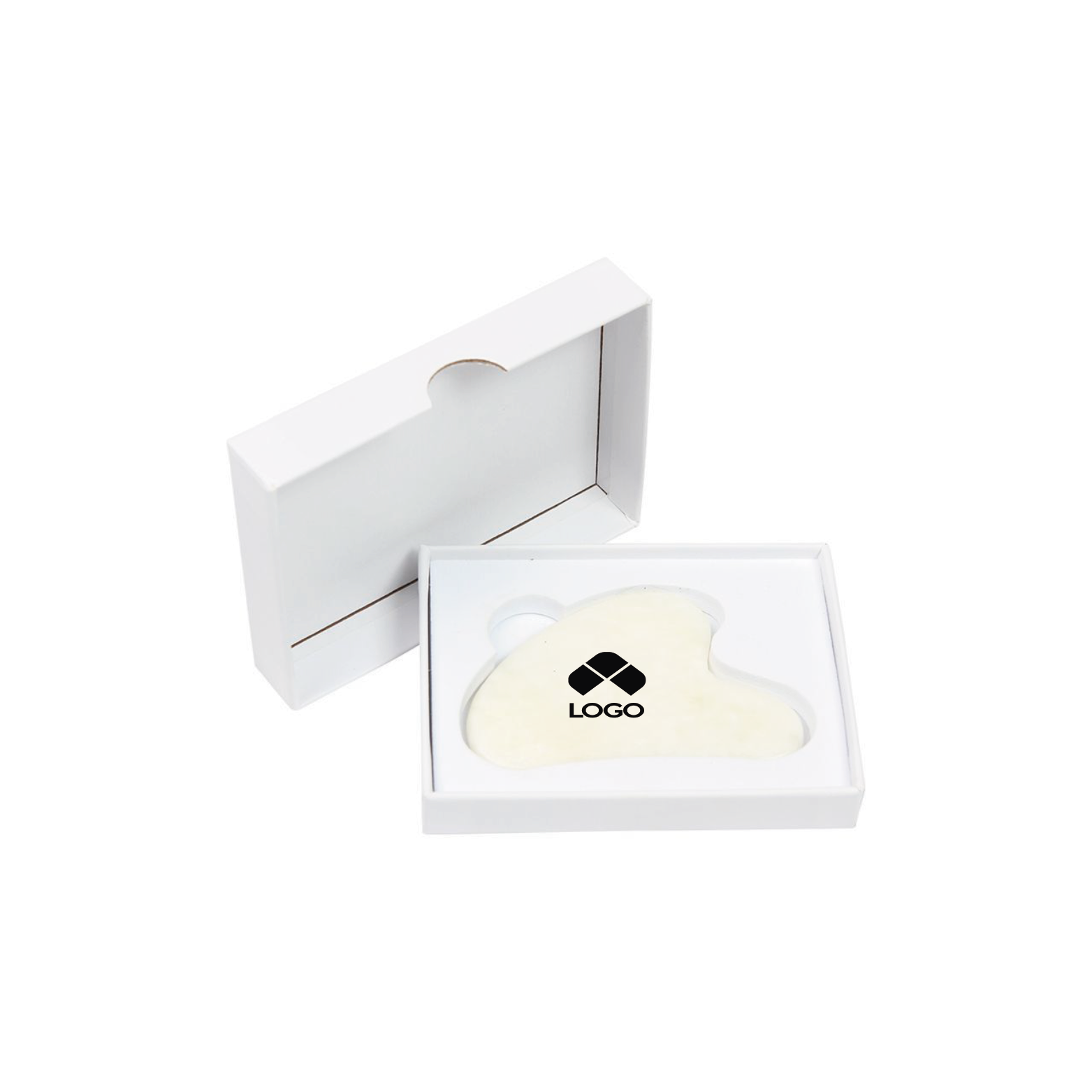 MASAJEADOR PARA EL ROSTRO TIPO GUA SHA FABRICADO EN PIEDRA REAL PULIDA COLOR BLANCO, INCLUYE CAJA DE CARTON PARA REGALO COLOR BLANCA SUAJADO A LA FORMA DEL PRODUCTO. ESTE MASAJEADOR TE OFRECE UNA OPORTUNIDAD UNICA DE MIMARTE Y CUIDAR DE TU PIEL DE UNA MANERA LUJOSA Y RELAJANTE. ES PERFECTO PARA AQUELLOS QUE BUSCAN UNA RUTINA DE CUIDADO FACIAL EFECTIVA, HOLISTICA Y ELEGANTE