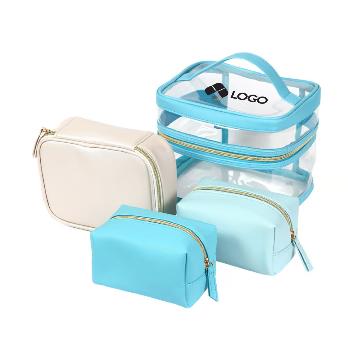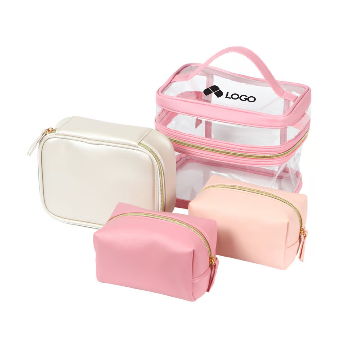 ORGANIZA TUS COSMETICOS Y ACCESORIOS CON ESTILO CON ESTE COMPLETO JUEGO DE 4 COSMETIQUERAS DISEÑADAS PARA ADAPTARSE A TODAS TUS NECESIDADES. CADA PIEZA COMBINA FUNCIONALIDAD CON UN DISEÑO MODERNO EN COLORES QUE HACEN JUEGO, PERFECTAS PARA VIAJAR O MANTENER TODO EN ORDEN EN CASA. INCLUYE UNA COSMETIQUERA FABRICADA EN PVC TRANSPARENTE CON ASA SUPERIOR Y CIERRE IDEAL PARA LLEVAR TODO A LA VISTA Y CON FÁCIL ACCESO. 1 COSMETIQUERA MEDIANA EN CURPIEL, CON CIERRE Y ESTRUCTURA RESISTENTE, PERFECTA PARA USO DIARIO. 2 COSMETIQUERAS PEQUEÑAS TAMBIÉN EN CURPIEL, IDEALES PARA OBJETOS MÁS COMPACTOS COMO LABIALES, JOYERÍA O ARTÍCULOS DE TOCADOR