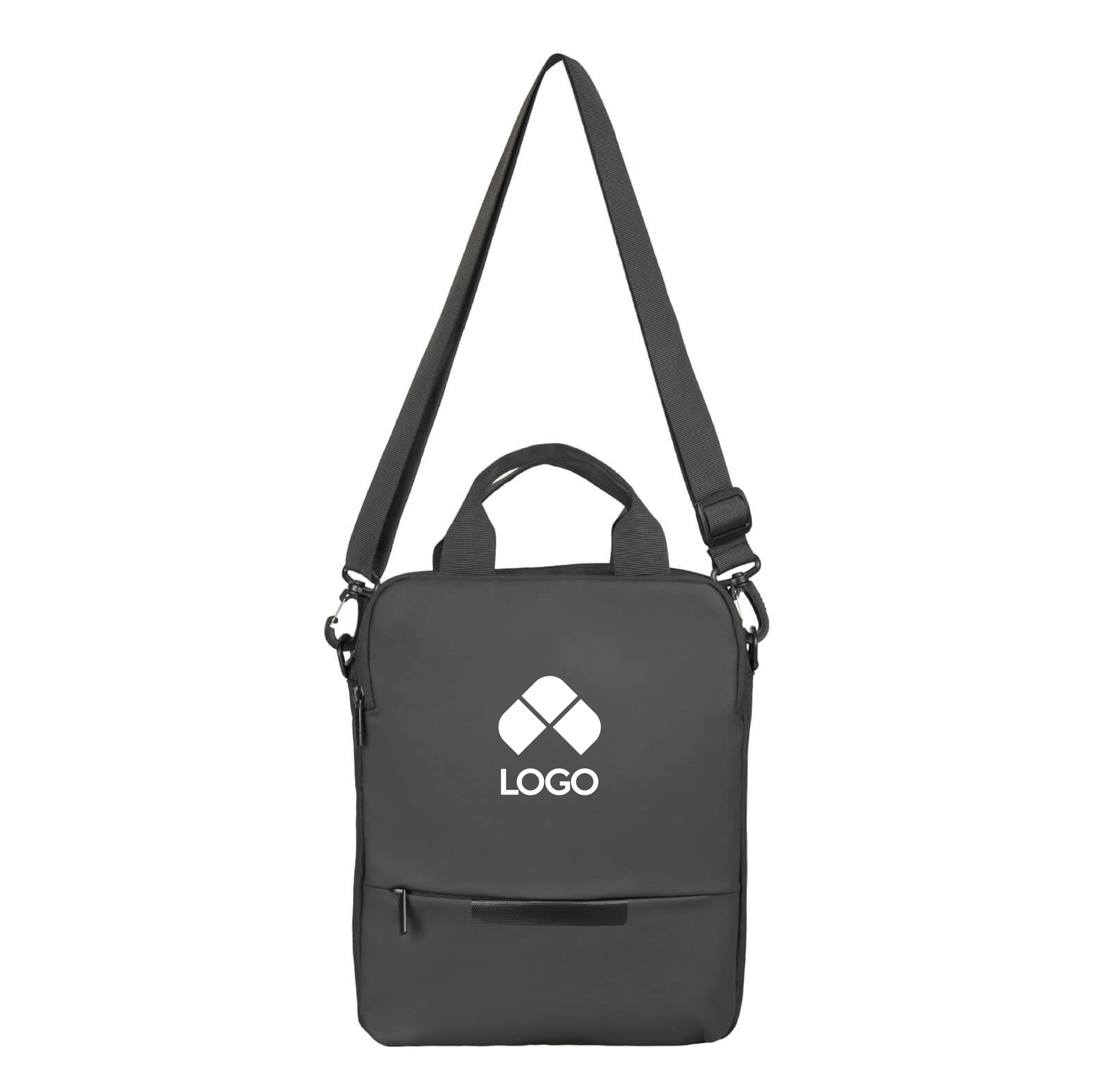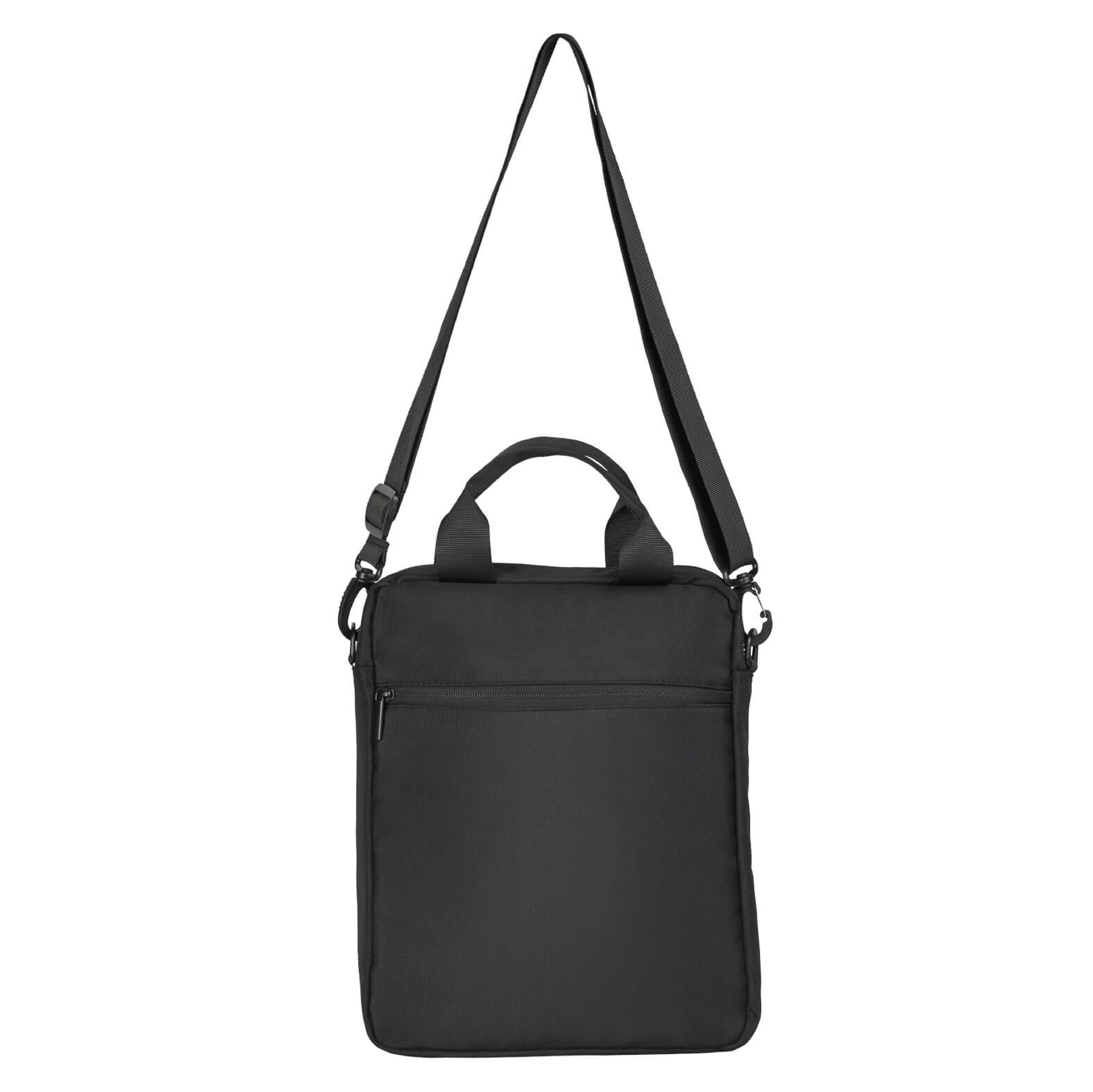 PORTAFOLIO DE POLIESTER CON COMPARTIMENTO PRINCIPAL AMPLIO Y PORTA LAPTOP DE HASTA 15", DOS BOLSILLOS FRONTALES CON CIERRE, BOLSA TRASERA CON CIERRE, ASAS Y CORREA AJUSTABLE
