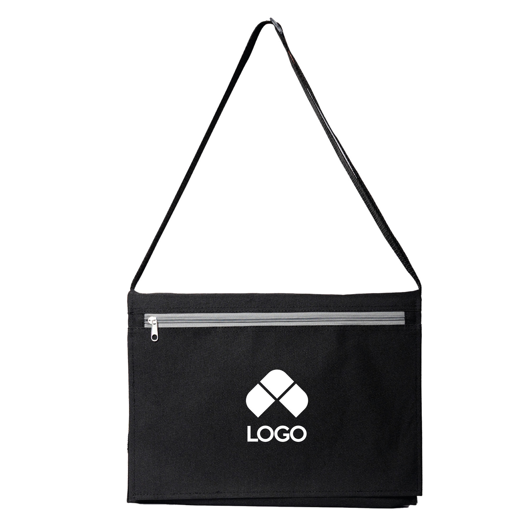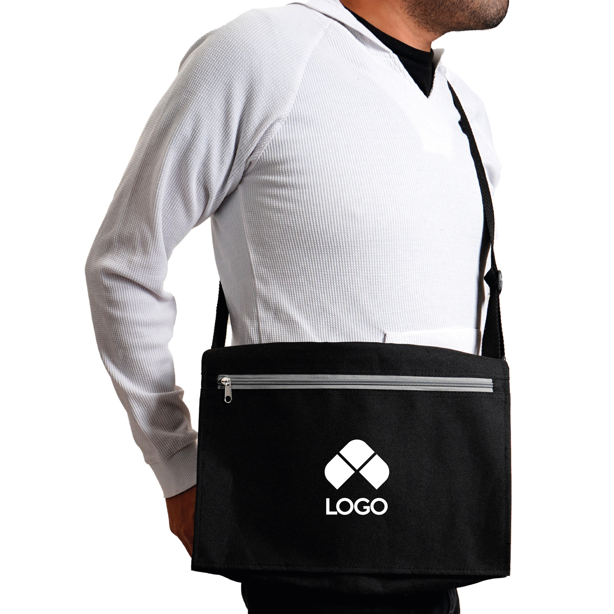 PORTAFOLIO CON COMPARTIMENTO PRINCIPAL PARA LAPTOP DE HASTA 15", ORGANIZADOR FRONTAL, SOLAPA CON CIERRE DE VELCRO, BOLSA TRASERA CON CIERRE Y CORREA AJUSTABLE