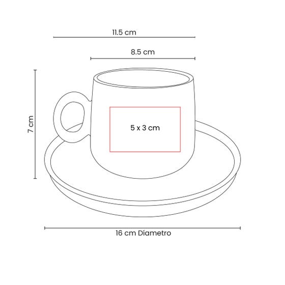 Medidas: 8.5 X 7 X 11.5 CM TAZA / 16 CM DIAMETRO PLATO