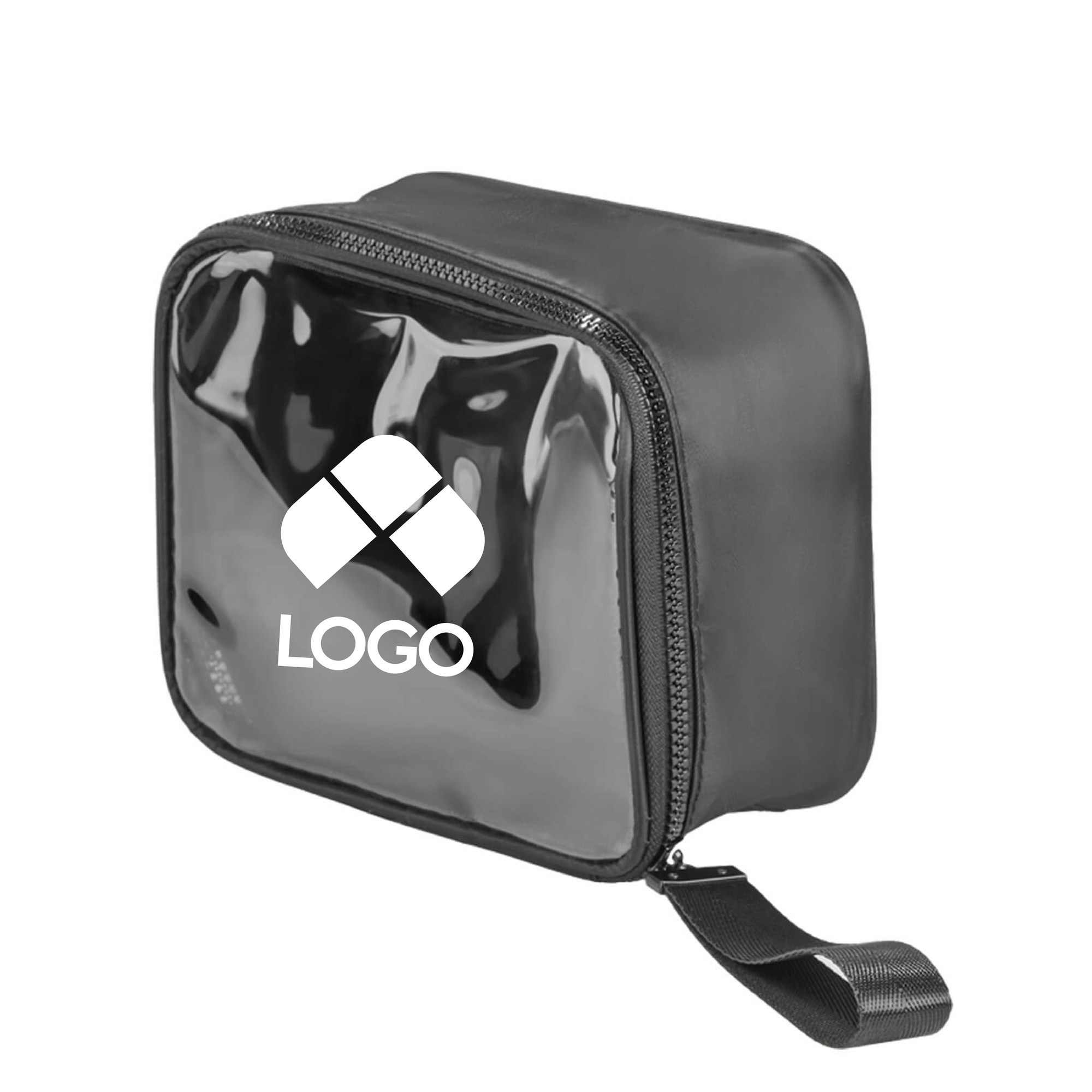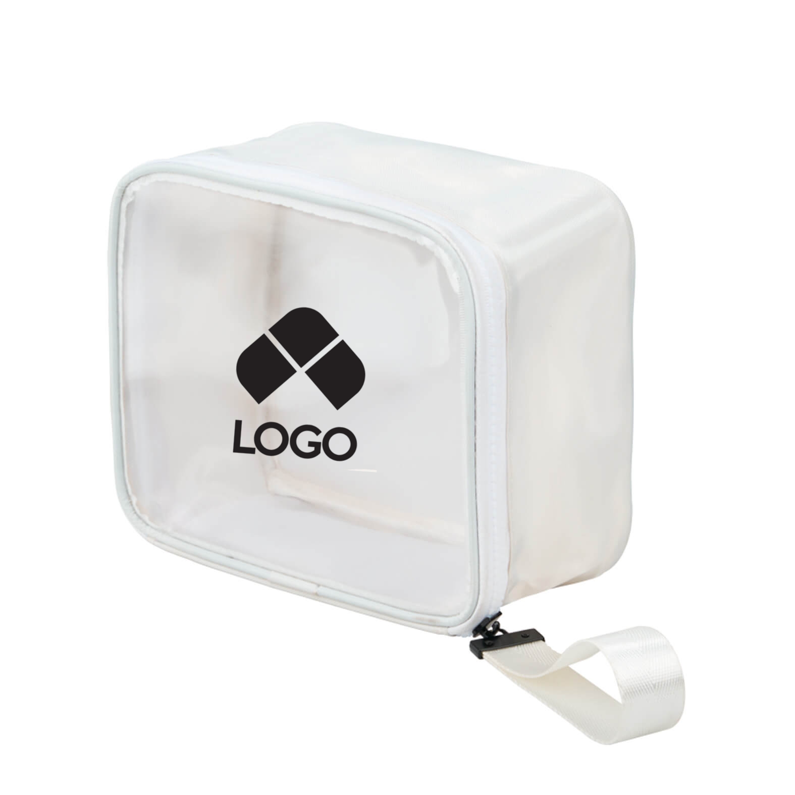 Observaciones: COSMETIQUERA RECTANGULAR DE PLASTICO CON FRENTE TRANSPARENTE, CIERRE Y ASA