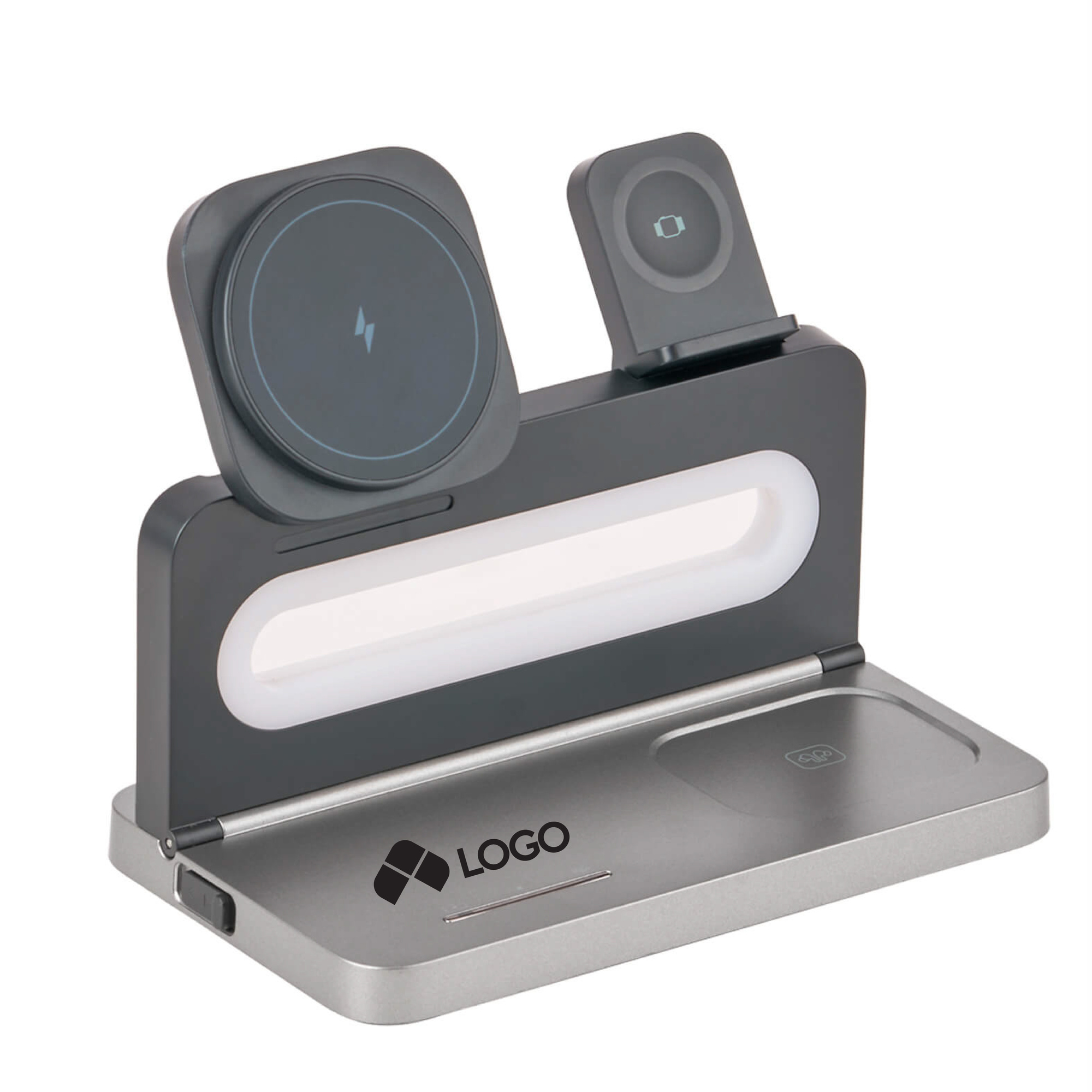 MULTICARGADOR INALAMBRICO PLEGABLE 3 EN 1 PARA SMARTPHONE, AUDIFONOS Y RELOJ INTELIGENTE. INCLUYE CABLE DE CARGA TIPO C