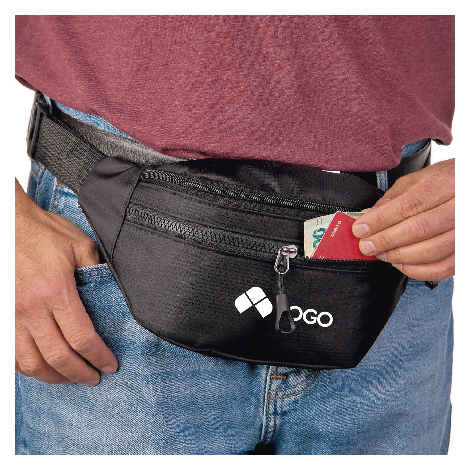 CANGURERA DE POLIESTER CON COMPARTIMENTO PRINCIPAL, DOS COMPARTIMENTOS SECUNDARIOS CON CIERRE Y CORREA AJUSTABLE CON BROCHE