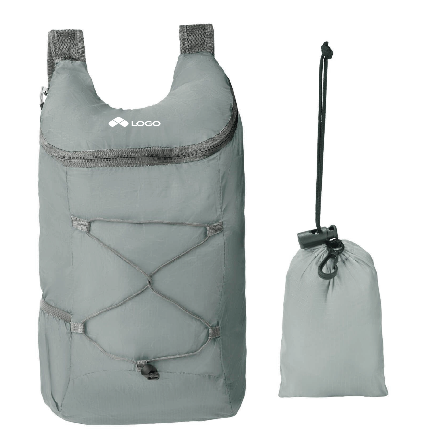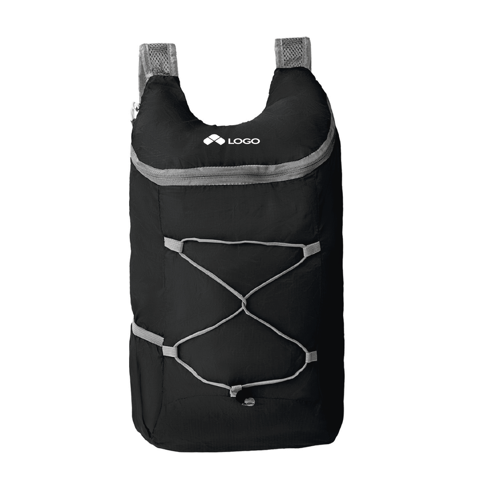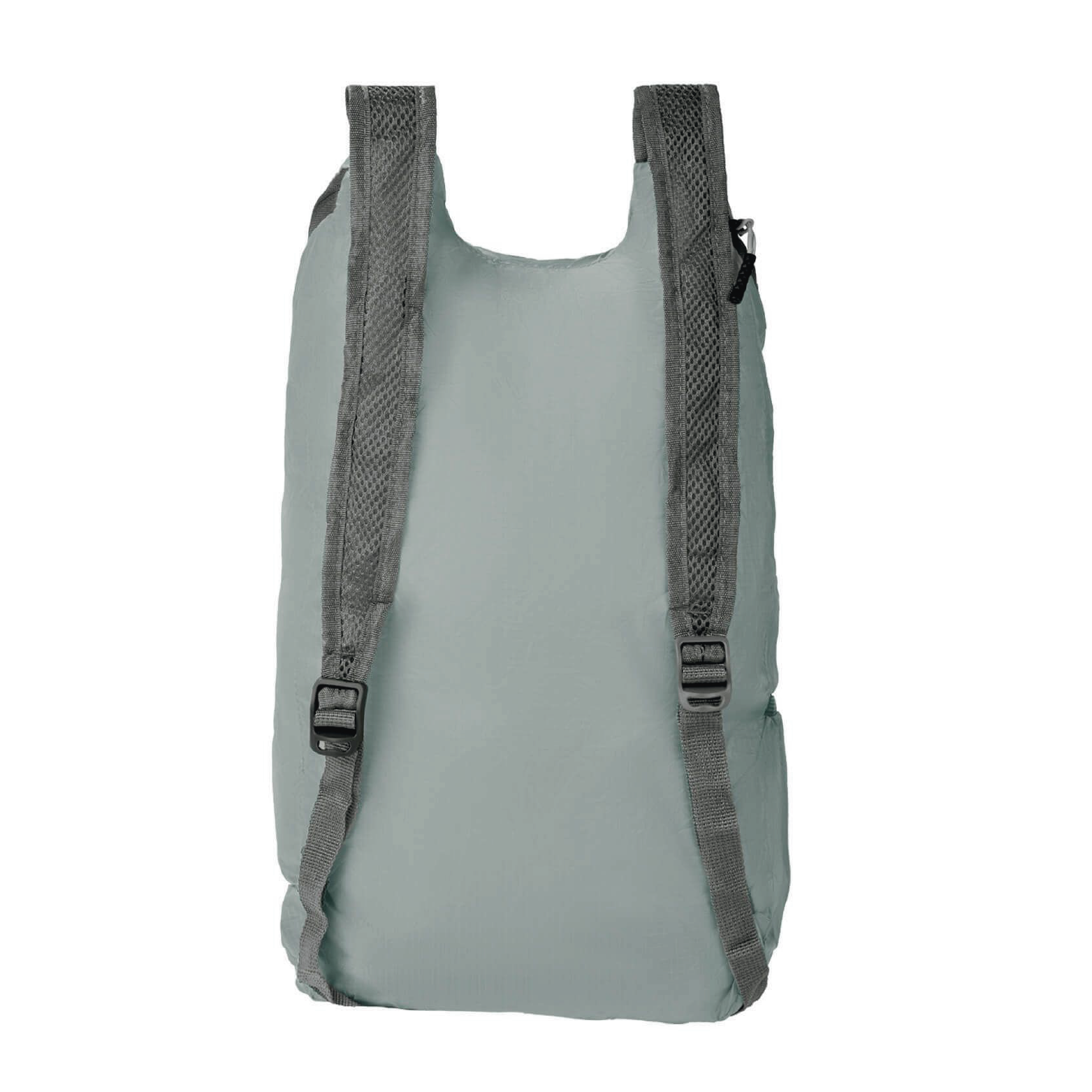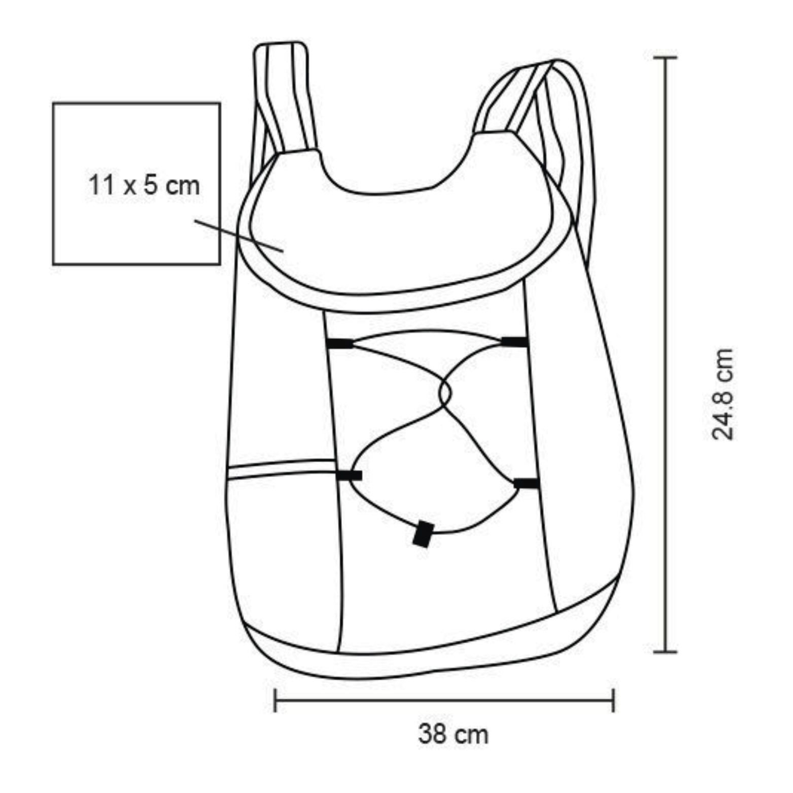 MOCHILA PLEGABLE CON COMPARTIMENTO PRINCIPAL CON DOBLE CIERRE, UNA BOLSA LATERAL CON ELASTICO Y RED FRONTAL PARA ZAPATOS. INCLUYE FUNDA PARA GUARDAR CON CORREA AJUSTABLE