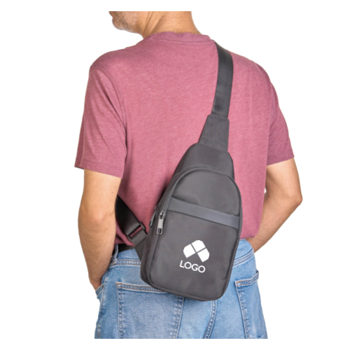 BOLSA DE HOMBRO DE POLIESTER CON COMPARTIMENTO PRINCIPAL CON BOLSILLO INTERNO, BOLSA FRONTAL CON CIERRE Y COMPARTIMENTO ABIERTO, ASI COMO CORREA AJUSTABLE