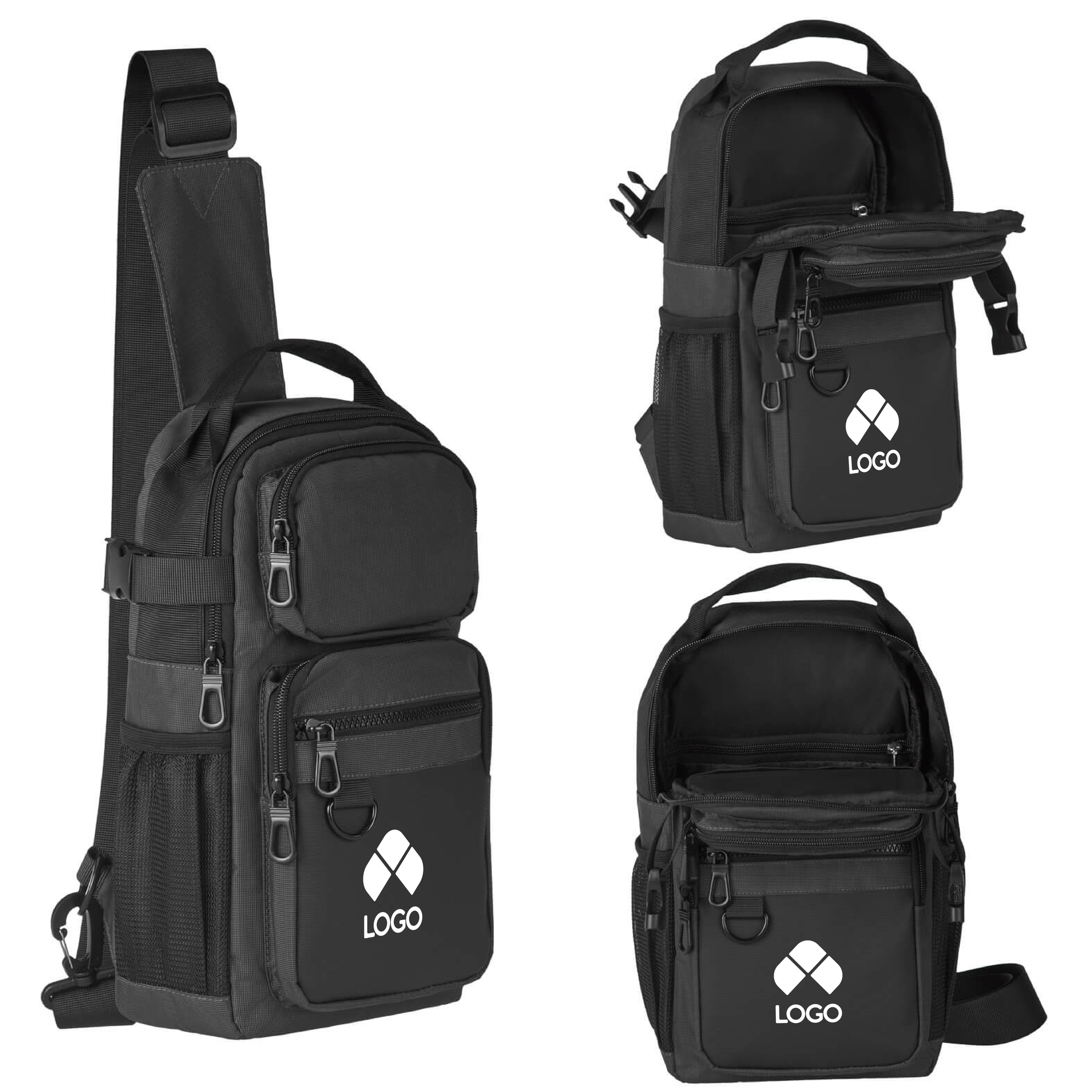 BOLSA DE HOMBRO DE POLIESTER CON COMPARTIMENTO PRINCIPAL CON ORGANIZADOR INTERNO, CUATRO BOLSILLOS CON CIERRE, DOS MALLAS LATERALES, BROCHES AJUSTABLES, ASA SUPERIOR Y CORREA AJUSTABLE