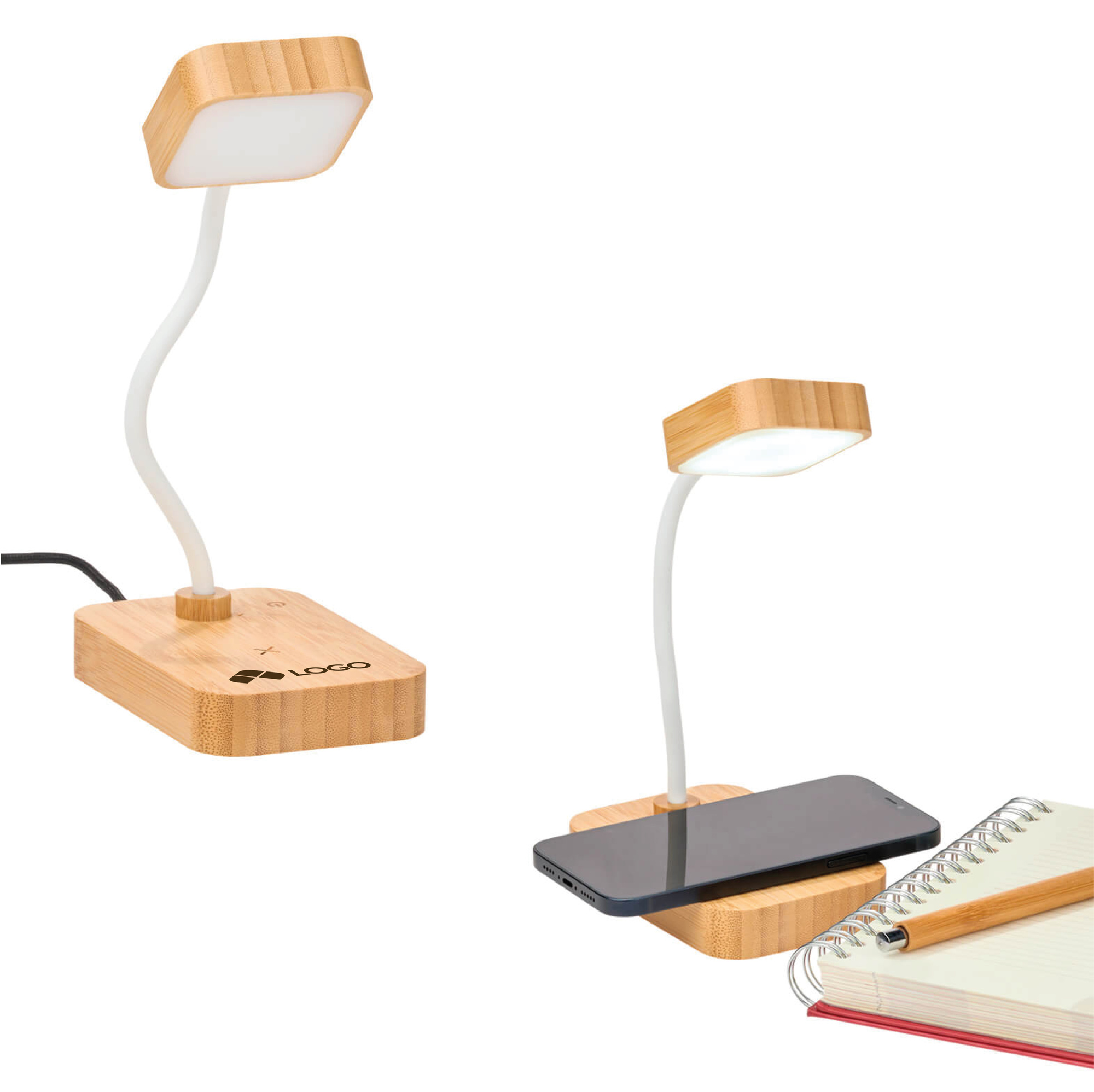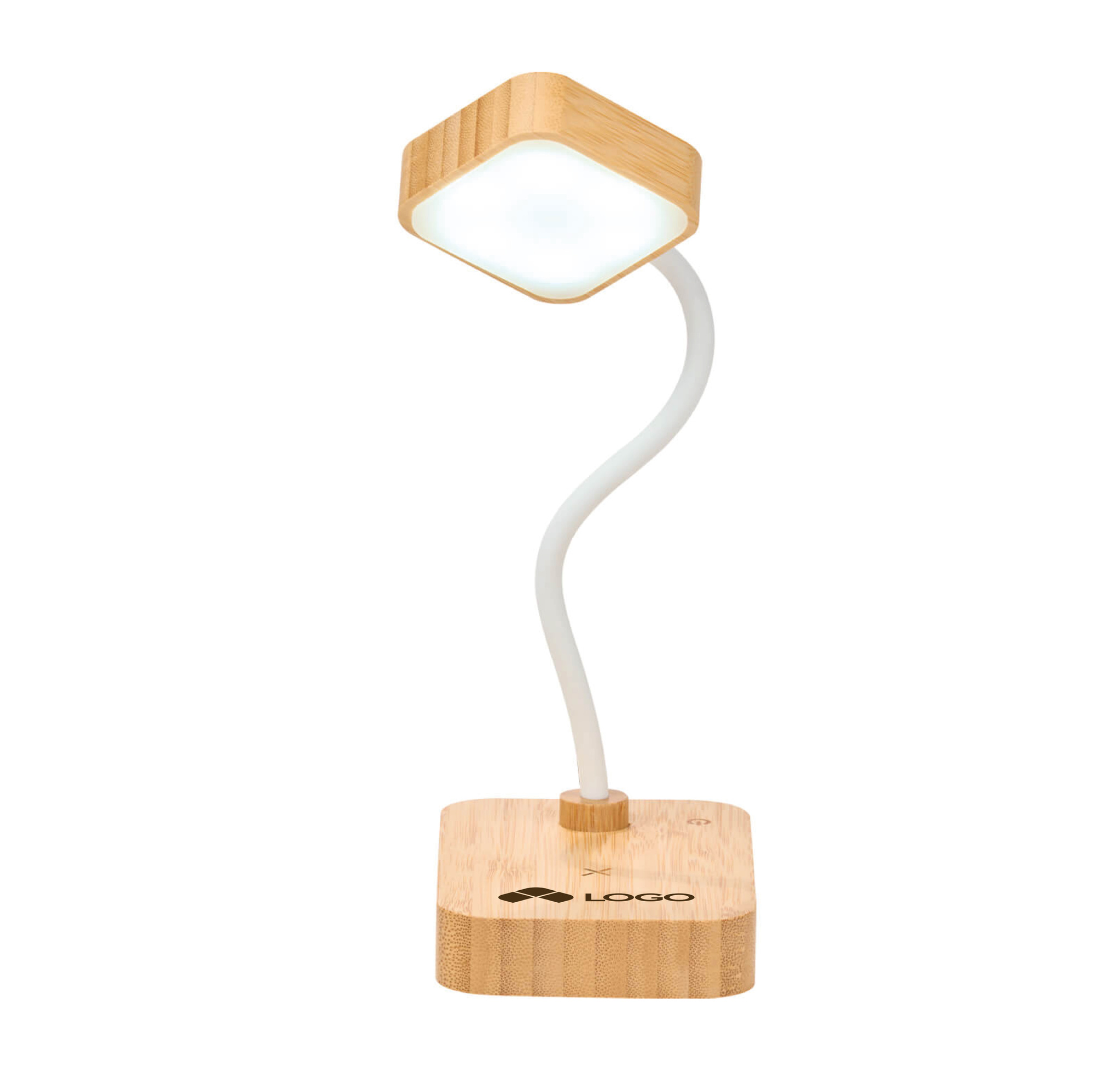CARGADOR INALAMBRICO DE BAMBU CON LAMPARA Y BOTON TOUCH CON TRES MODALIDADES. INCLUYE CABLE DE CARGA TIPO C