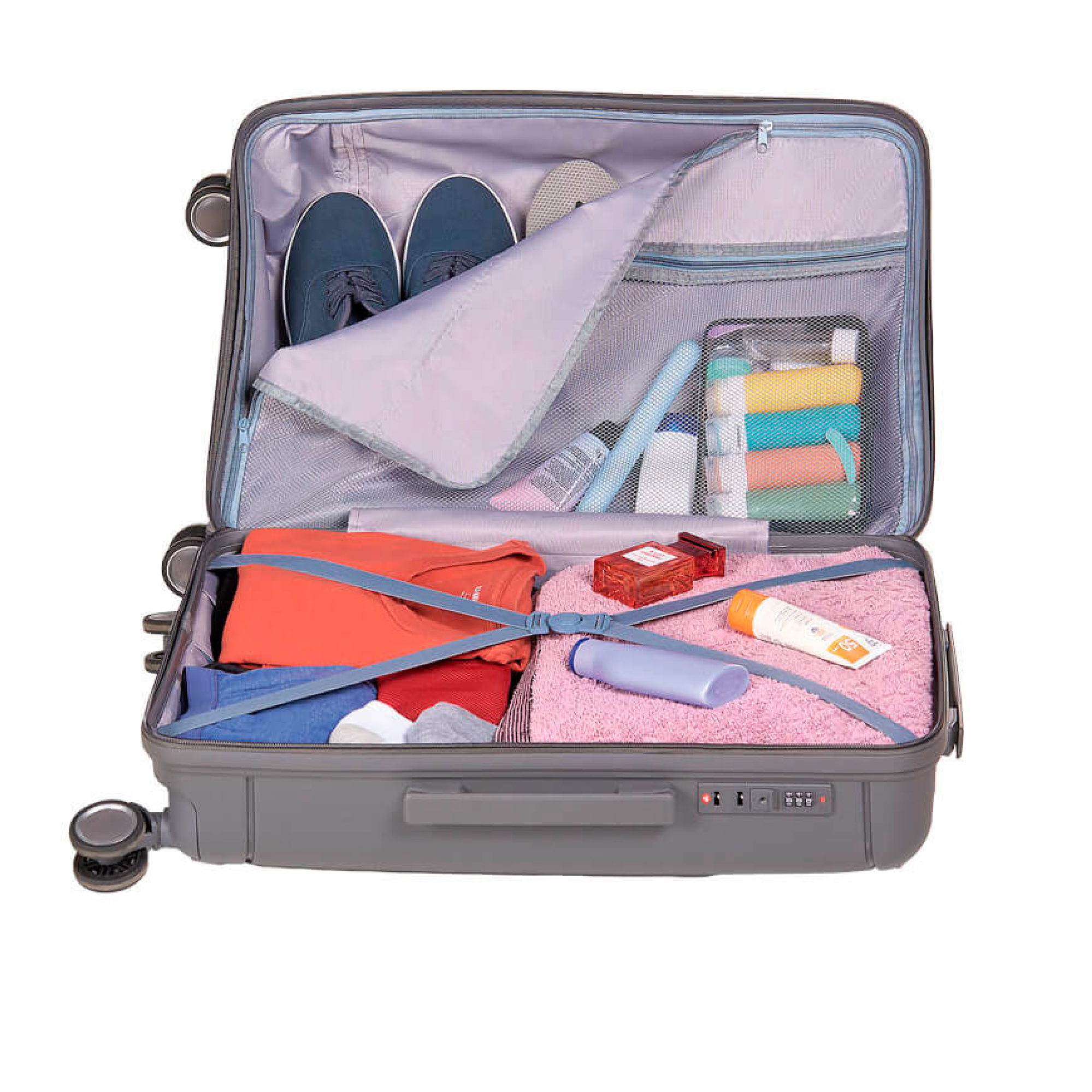 MALETA DE POLIPROPILENO, RESISTENTE A GOLPES, IDEAL PARA VIAJE. CUENTA CON DOBLE RUEDA GIRATORIA, ASA METALICA RETRACTIL Y CANDADO DE SEGURIDAD
