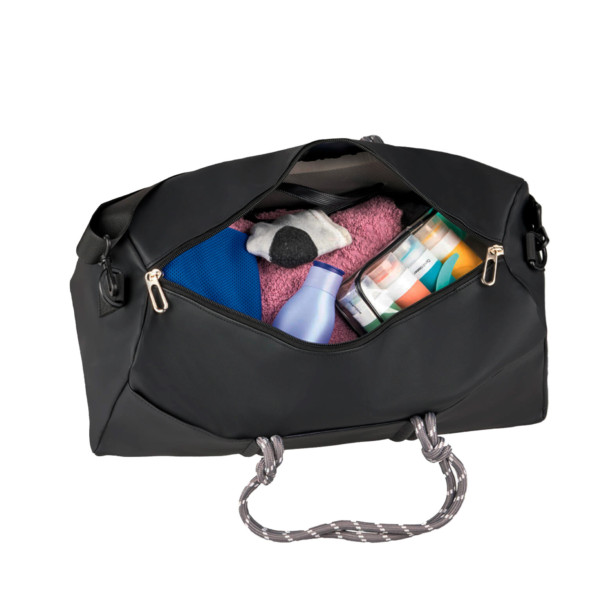 MALETA DEPORTIVA CON COMPARTIMENTO PRINCIPAL, BOLSILLO INTERNO CON CIERRE, BOLSA FRONTAL, DOS BOLSILLOS LATERALES Y CORREA AJUSTABLE