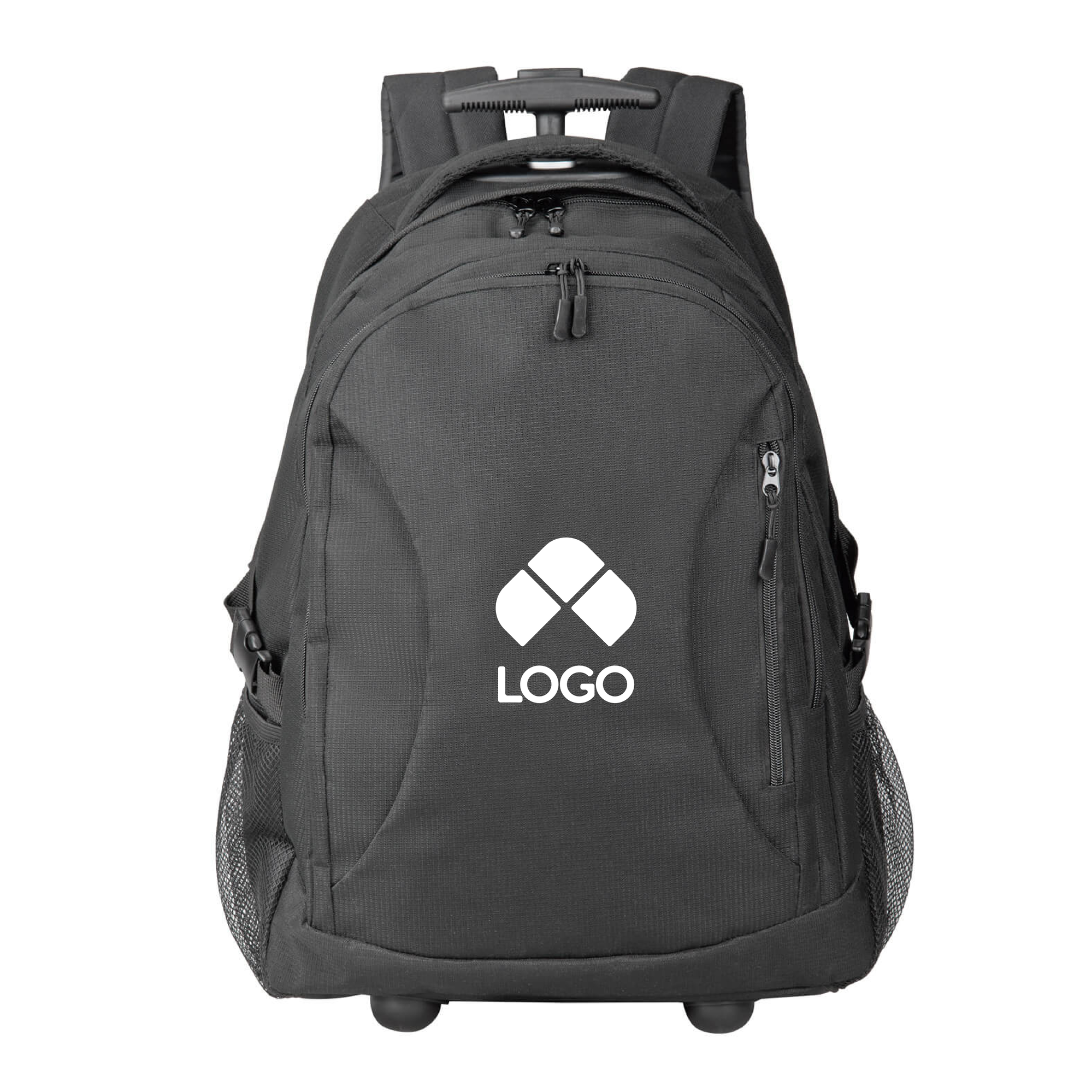 MOCHILA TROLLEY CON ASA RETRACTIL, UN COMPARTIMENTO PRINCIPAL, UN COMPARTIMENTO SECUNDARIO CON PORTA LAPTOP DE 16", UNA BOLSA FRONTAL, DOS MALLAS LATERALES CON ELASTICO, BROCHES AJUSTABLES Y RESPALDO CON ASAS PARA CONVERTIRLA EN MOCHILA