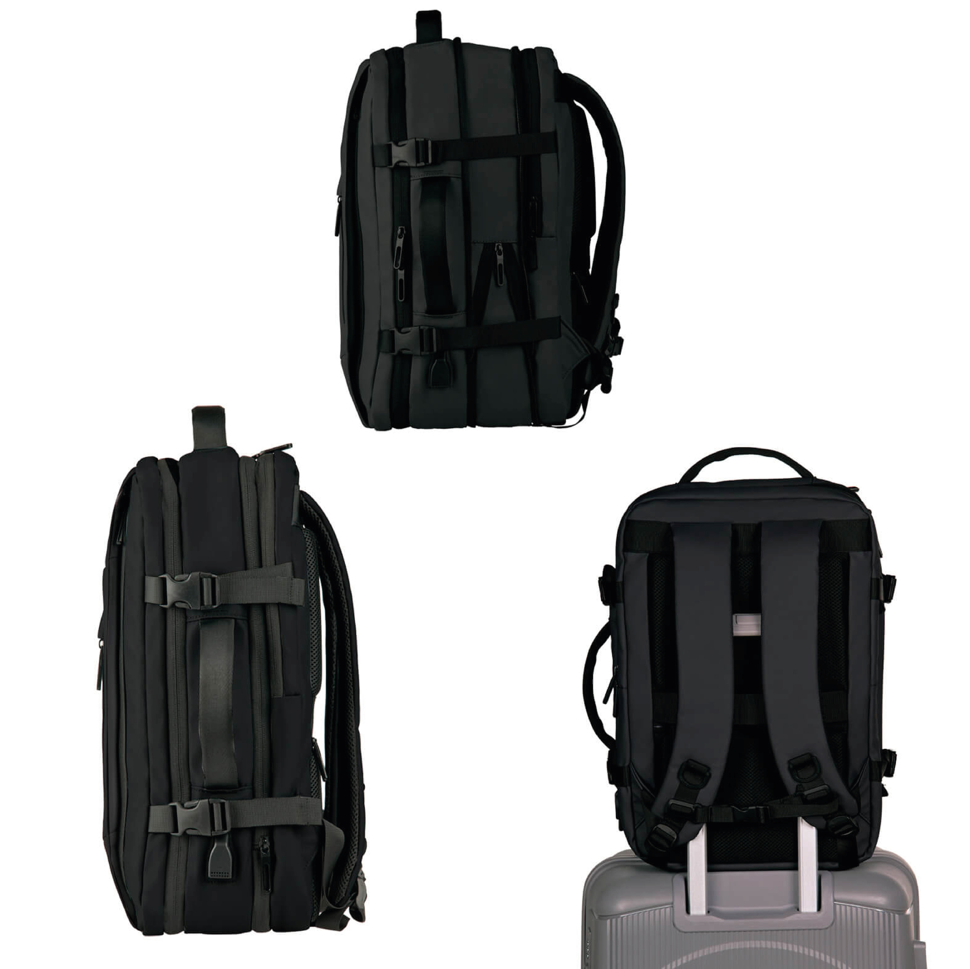 MOCHILA CON COMPARTIMENTO PRINCIPAL DE MALLA CON CIERRE, PUERTO USB, ORGANIZADOR INTERNO, CIERRE EXTENSIBLE PARA AMPLIAR LA CAPACIDAD, CON BROCHES AJUSTABLES, COMPARTIMENTO TRASERO CON PORTA LAPTOP DE 17", TRES BOLSAS FRONTALES CON CIERRE, RESPALDO ACOLCHADO CON BOLSA DE SEGURIDAD Y BANDA ELASTICA, ADEMAS DE ASA SUPERIOR Y LATERAL