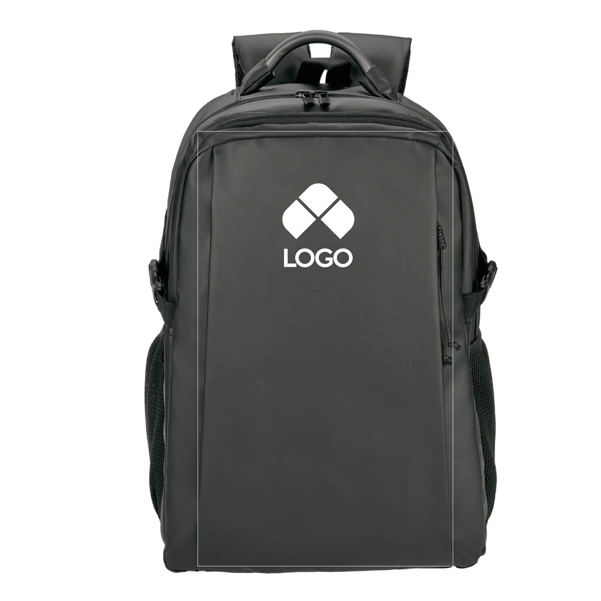 MOCHILA CON COMPARTIMENTO PRINCIPAL CON PORTA LAPTOP DE 17.5", COMPARTIMENTO SECUNDARIO CON ORGANIZADOR INTERNO, BOLSA FRONTAL CON CIERRE, DOS BOLSAS LATERALES CON BANDA ELASTICA, RESPALDO ACOLCHADO CON BANDA CARRY-ON, TIRANTES CON BROCHE Y ASA SUPERIOR METALICA