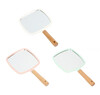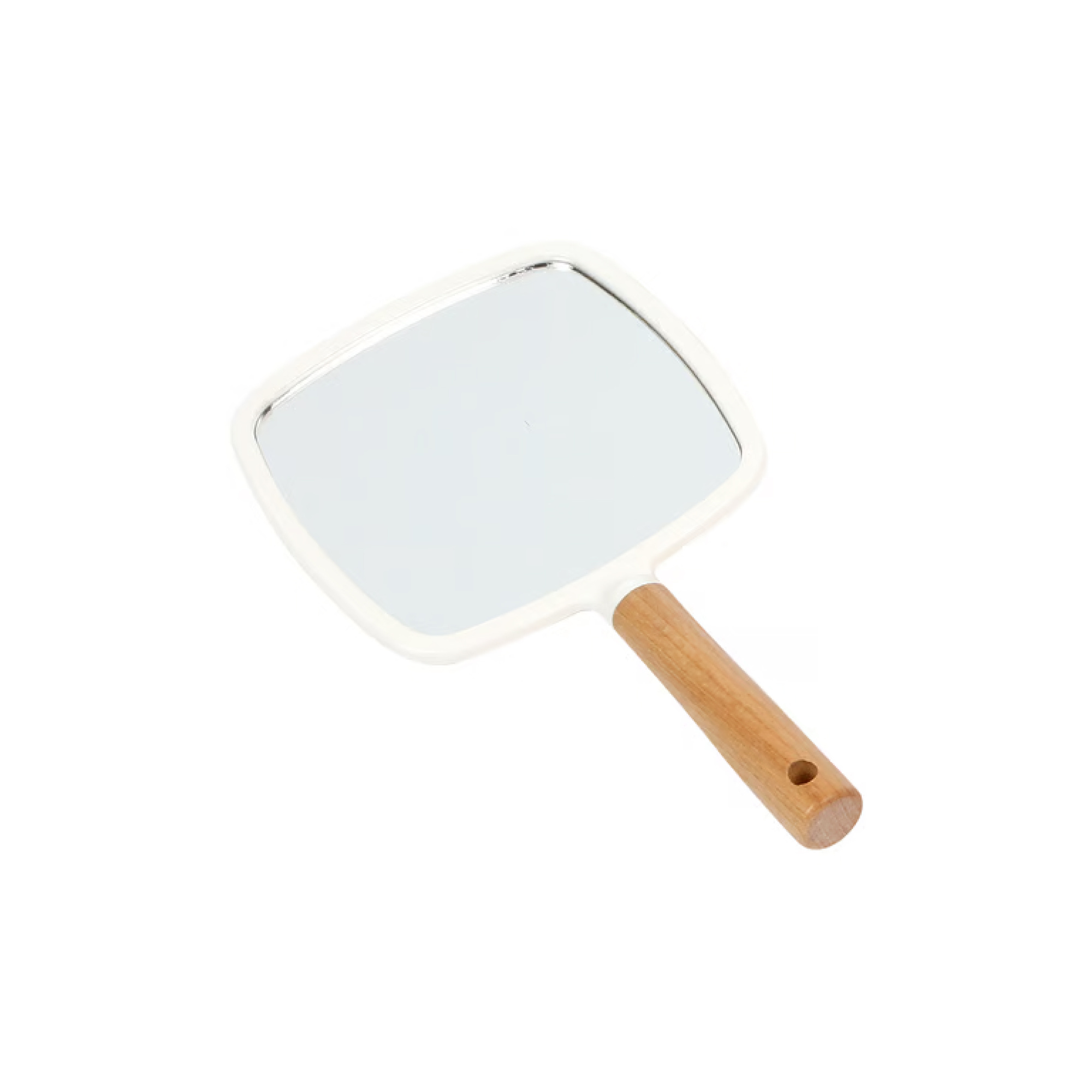 ESPEJO CON FORMA CUADRADA CON PUNTAS REDONDEADAS FABRICADO EN PLASTICO TIPO PS CARACTERIZADO POR COLORES CON ACABADOS BRILLANTES Y ES LIVIANO. CUENTA CON MANGO EN MADERA CON ACABADO EN LACA PARA UNA MAYOR PROTECCION Y ABRASION