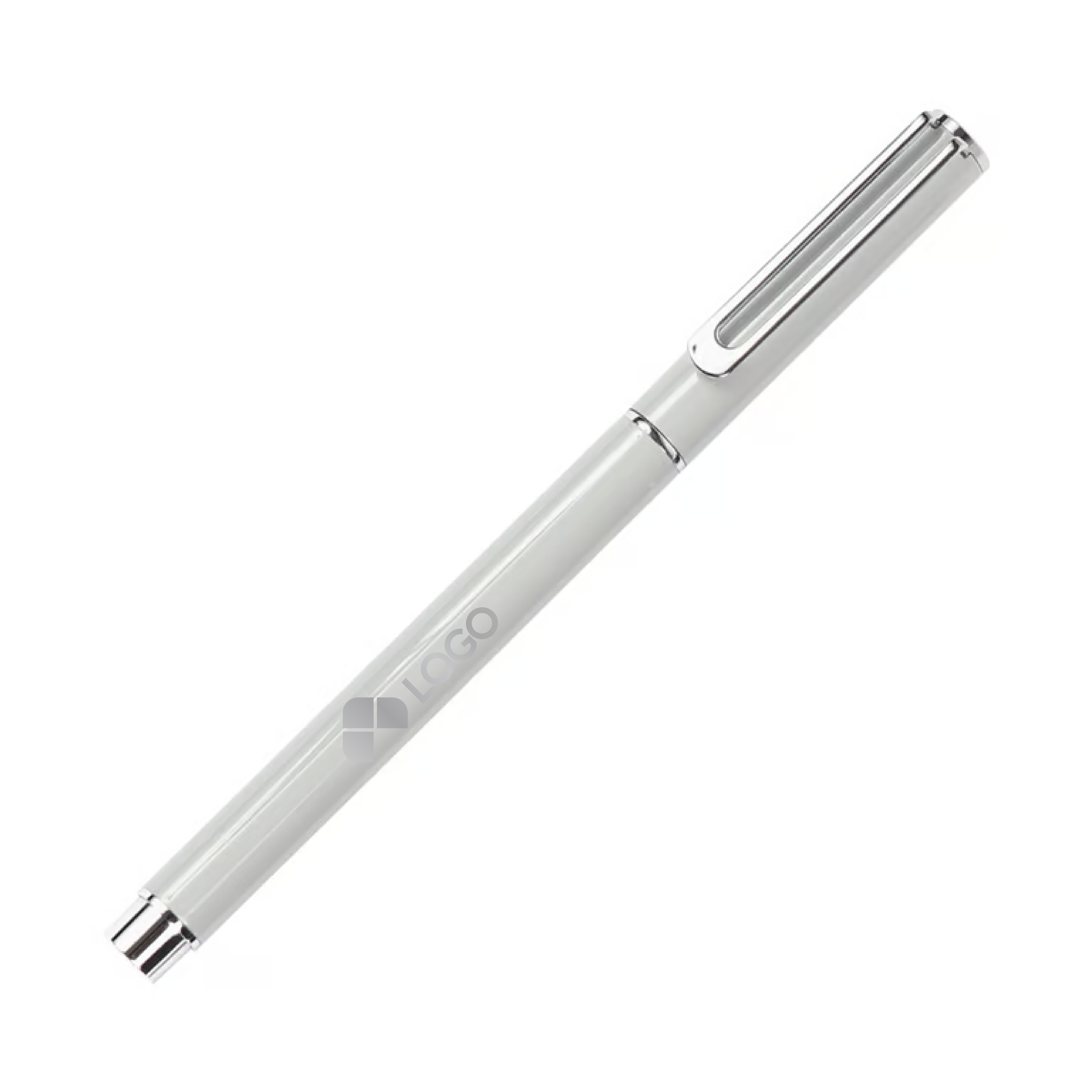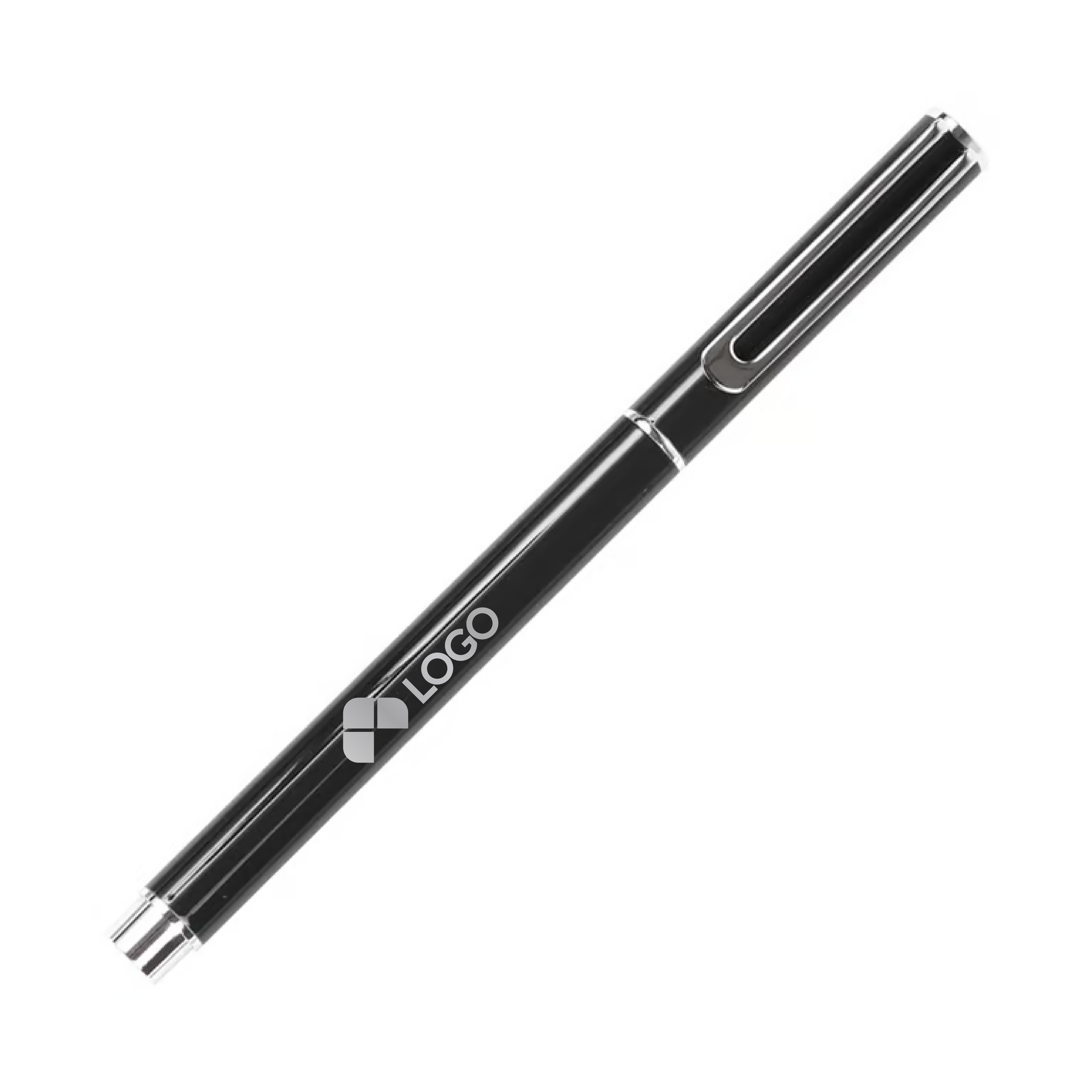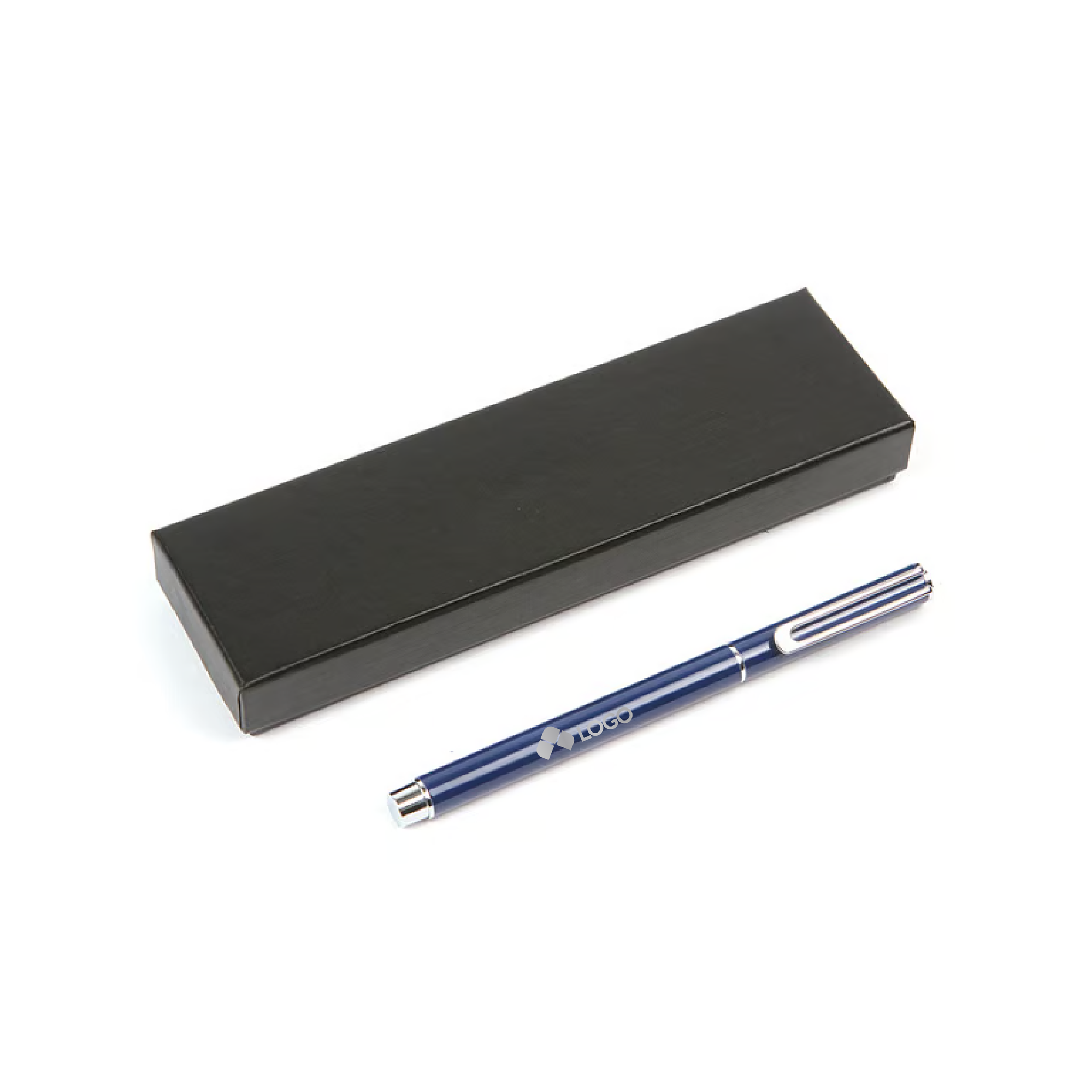 BOLIGRAFO CON BARRIL FABRICADO EN ACERO INOXIDABLE, CON DETALLES EN COLOR PLATEADO, TIPO ROLLER PEN CON RECAMBIO DE PLASTICO. TINTA DE ESCRITURA DE GEL COLOR NEGRO. INCLUYE CAJA DE REGALO COLOR NEGRO