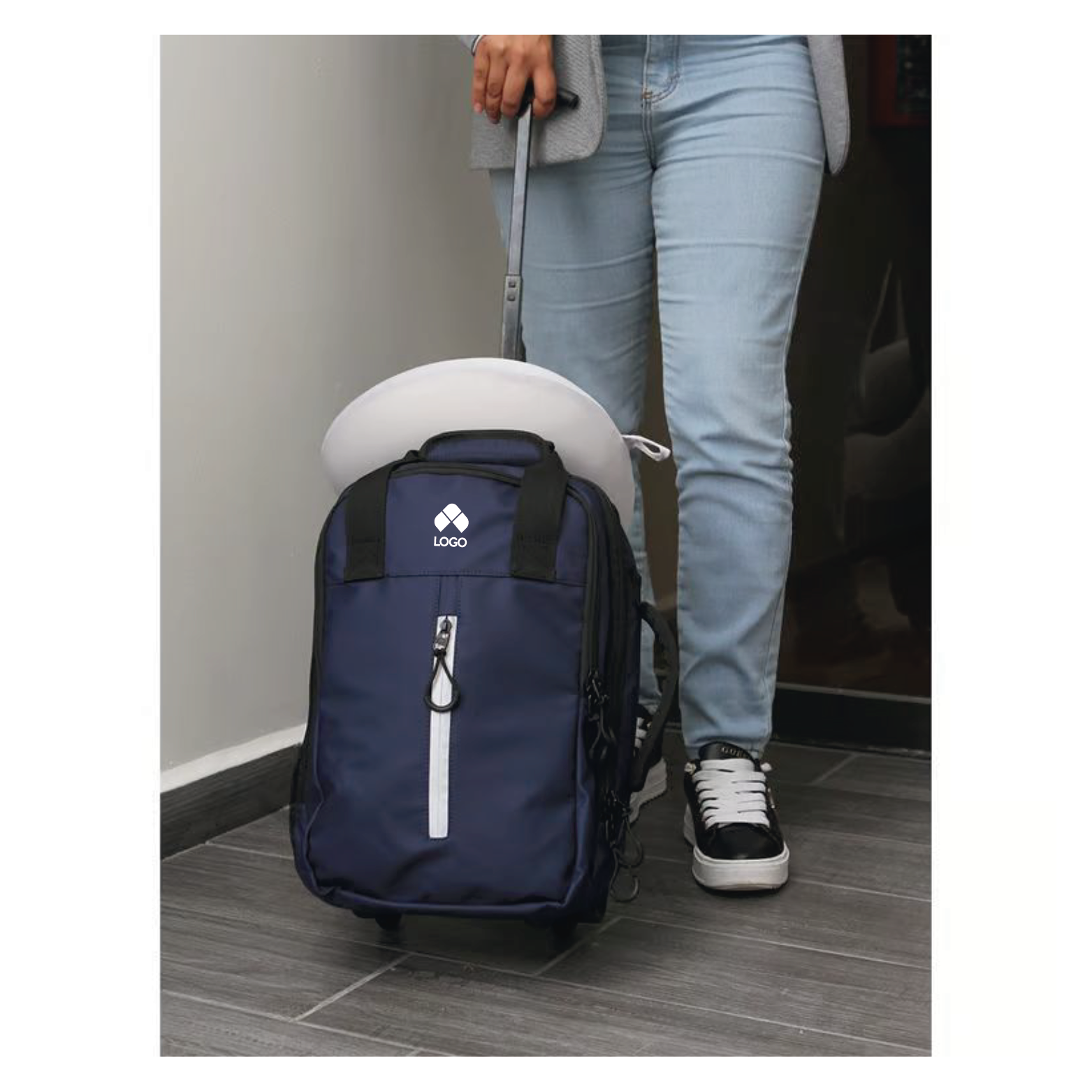 MALETA COMPACTA FABRICADA EN POLIÉSTER, CUENTA CON UN SOLO TUBO DE JALE, RUEDAS TRASERAS DOBLES Y BOLSILLO INTERIOR PARA PORTÁTIL. TAMAÑO PERFECTO PARA LLEVAR DEBAJO DEL ASIENTO DE AVIONES. IDEAL PARA VIAJES LIGEROS Y FUNCIONALES