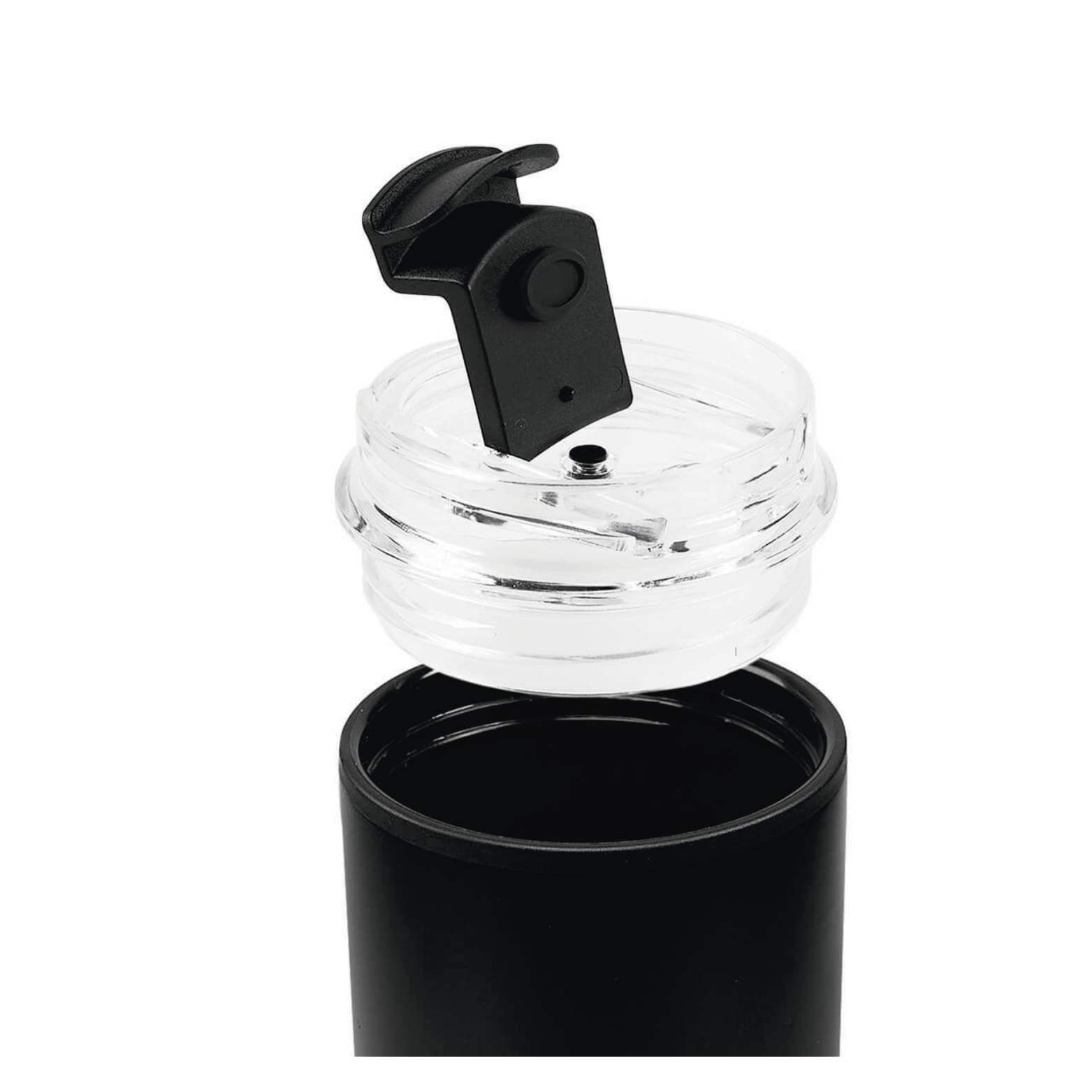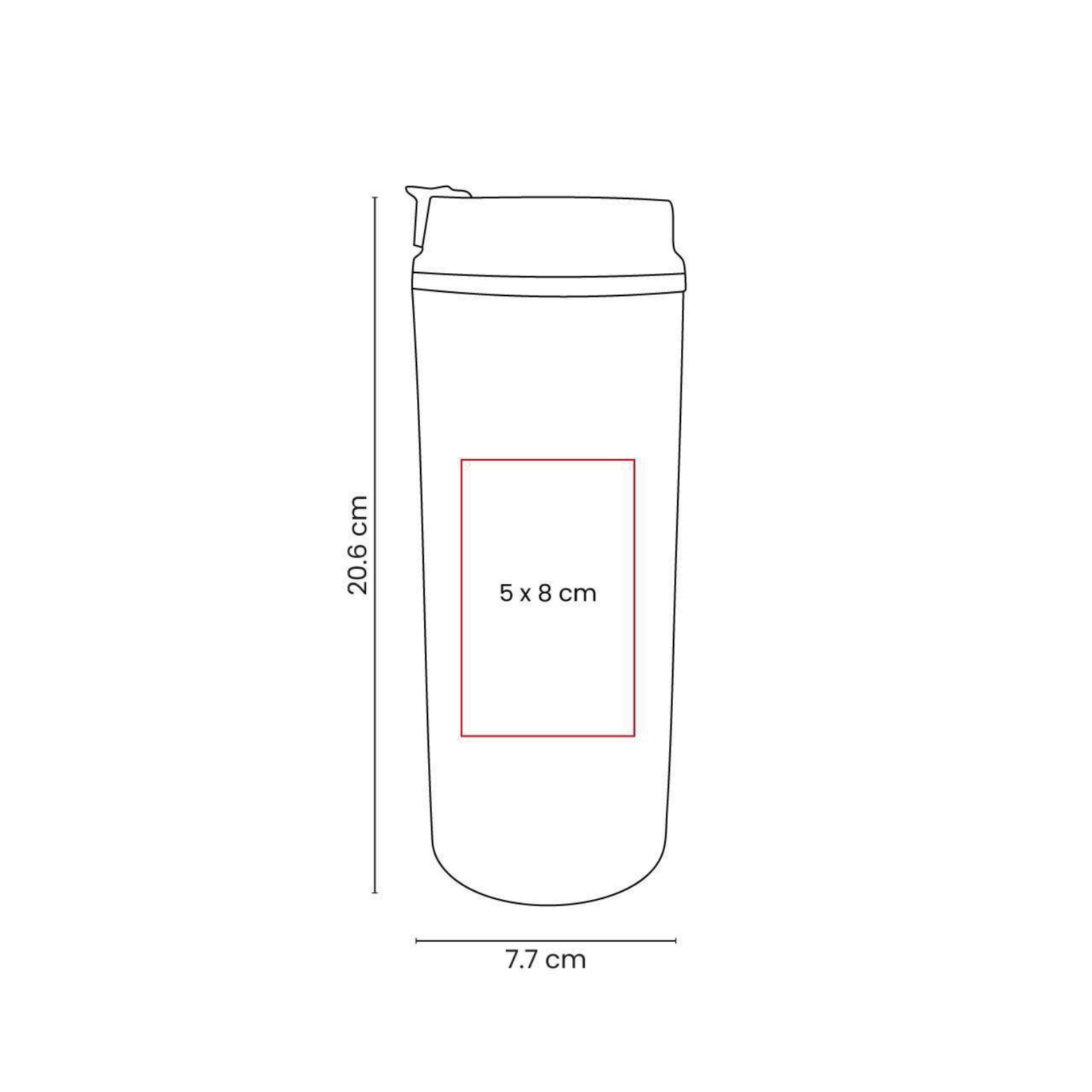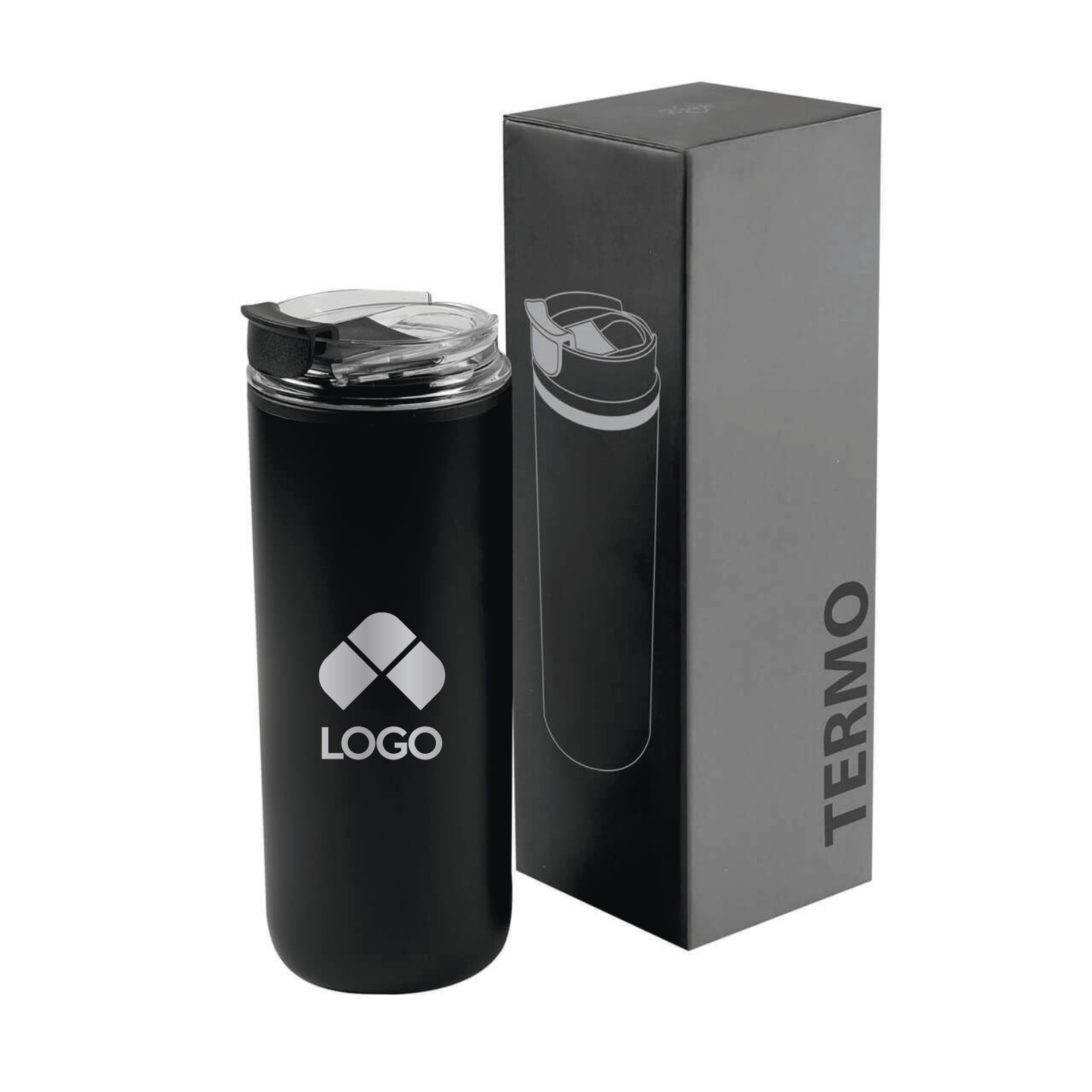 TERMO DOBLE PARED. PARED INTERNA DE PLASTICO Y EXTERNA DE ACERO INOXIDABLE. TAPA CON SISTEMA DE ROSCA QUE GARANTIZA UN CIERRE HERMETICO. SOBRE TAPA CON SISTEMA PUSH QUE PREVIENE DERRAMES. CAPACIDAD DE 16 OZ. INCLUYE CAJA INDIVIDUAL