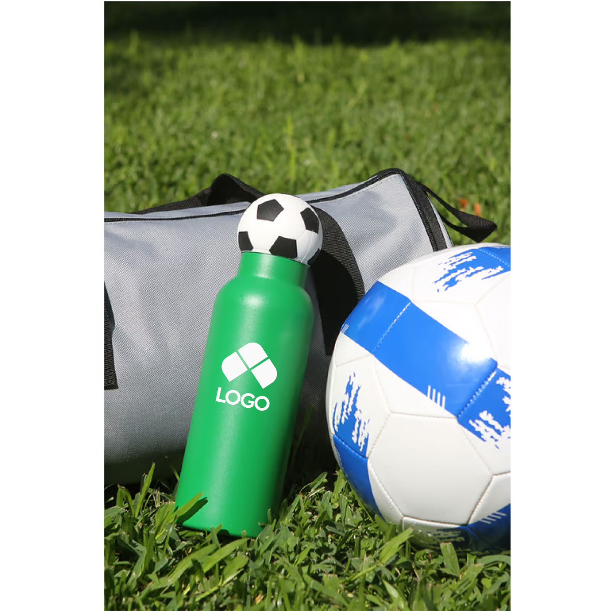 LLEVA TU PASIÓN POR EL DEPORTE A TODAS PARTES CON ESTE VASO DE 500 ML, FABRICADO EN ACERO INOXIDABLE DE DOBLE PARED, QUE MANTIENE TUS BEBIDAS FRIAS O CALIENTES POR MÁS TIEMPO. SU DISEÑO RESISTENTE Y FUNCIONAL ES PERFECTO PARA EL DÍA A DÍA, VIAJES O ACTIVIDADES AL AIRE LIBRE. INCLUYE UN ORIGINAL ACCESORIO EN FORMA DE BALON SOBRE LA TAPA, QUE LE DA UN TOQUE DIVERTIDO Y ÚNICO, IDEAL PARA FANÁTICOS DEL FÚTBOL O COMO REGALO TEMATICO. UN VASO QUE COMBINA ESTILO, DURABILIDAD Y FUNCIONALIDAD EN CADA SORBO
