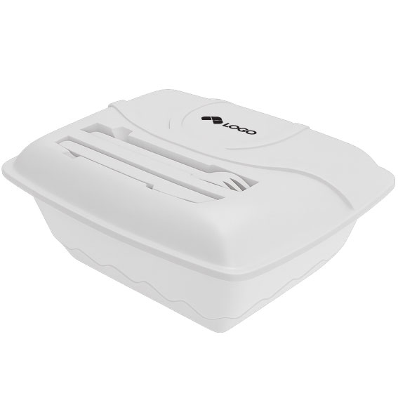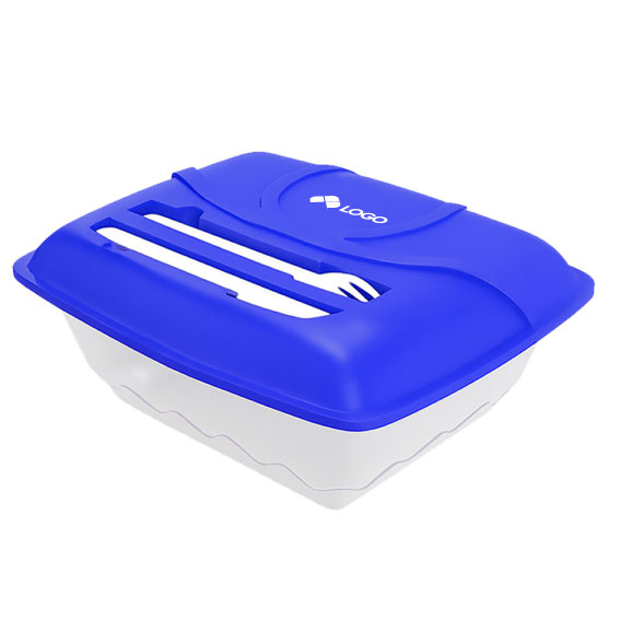 CONTENEDOR DE ALIMENTOS RECTANGULAR CON TAPPA SOLIDA QUE INCLUYE EN LA PARTE SUPERIOR CUCHILLO Y TENEDOR