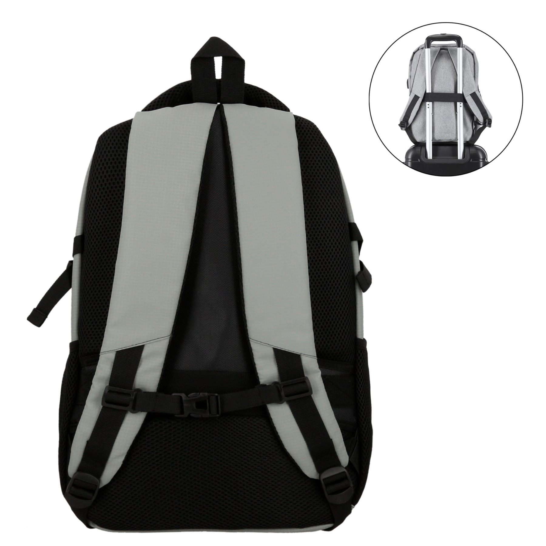 MOCHILA DE 1 COMPARTIMENTO PRINCIPAL CON PORTA LAPTOP, 1 COMPARTIMENTO SECUNDARIO CON ORGANIZADOR, 2 BOLSAS FRONTALES CON CIERRE, 2 BOLSAS LATERALES, RESPALDO ACOLCHADO, TIRANTES CON BROCHE, CARRY ON Y ASA SUPERIOR
