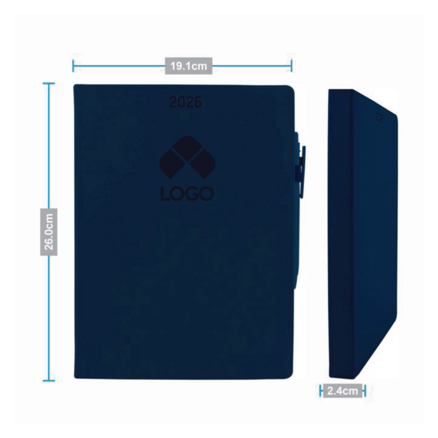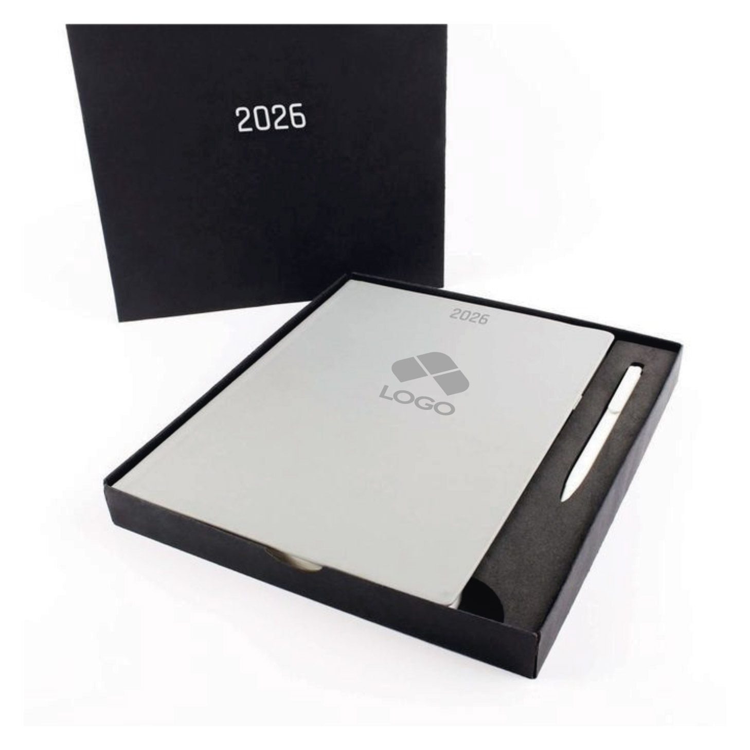 AGENDA SEMANAL DE 19.1 X 1.3 X 26 CM. DESTACA POR SU GRAN TAMAÑO Y ELEGANTE CAJA DE REGALO. INCLUYE SECCIONES COMO: DIAS FESTIVOS, PROPOSITOS DE AÑO NUEVO, PLANEACION DE VIAJES, LIBROS POR LEER Y COSAS QUE QUIERO HACER ANTES DE MORIR. INCLUYE UN BOLIGRAFO MODELO KOI. PAPEL DE BOSQUES SUSTENTABLES (PEFC/FSC)