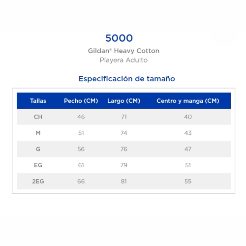 Descripción: PLAYERA MARCA GILDAN HEAVY COTTON 5.3 OZ 100% ALG CUELLO REDONDO BLANCA