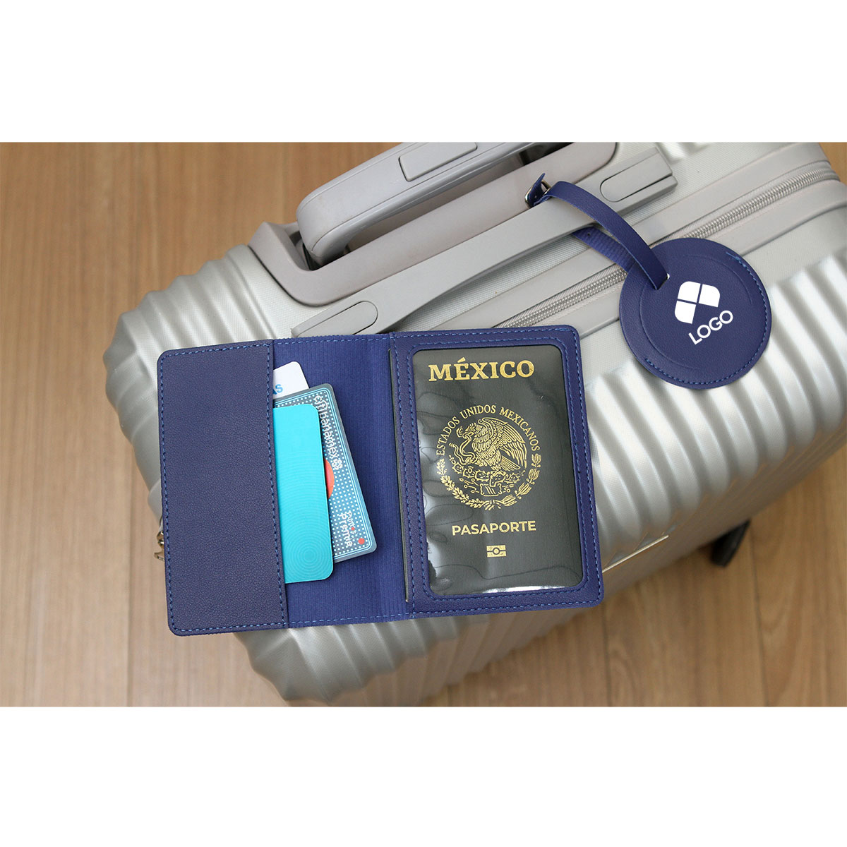 PORTA PASAPORTE CON IDENTIFICADOR DE MALETA FABRICADOS EN CURPIEL COLOR SOLIDO. EL IDENTIFICADOR EN FORMA CIRCULAR TIENE UNA CORREA AJUSTABLE PARA SUJETAR EN CUALQUIER TIPO DE MALETA. EL PORTA PASAPORTE CUENTA CON LA MEDIDA PERFECTA PARA TENER ESTE DOCUMENTO PERSONAL SEGURO EN TUS VIAJES ADEMAS DE DOS COMPARTIMENTOS, UNO CON VENTANA TRANSPARENTE Y OTRO DE CURPIEL