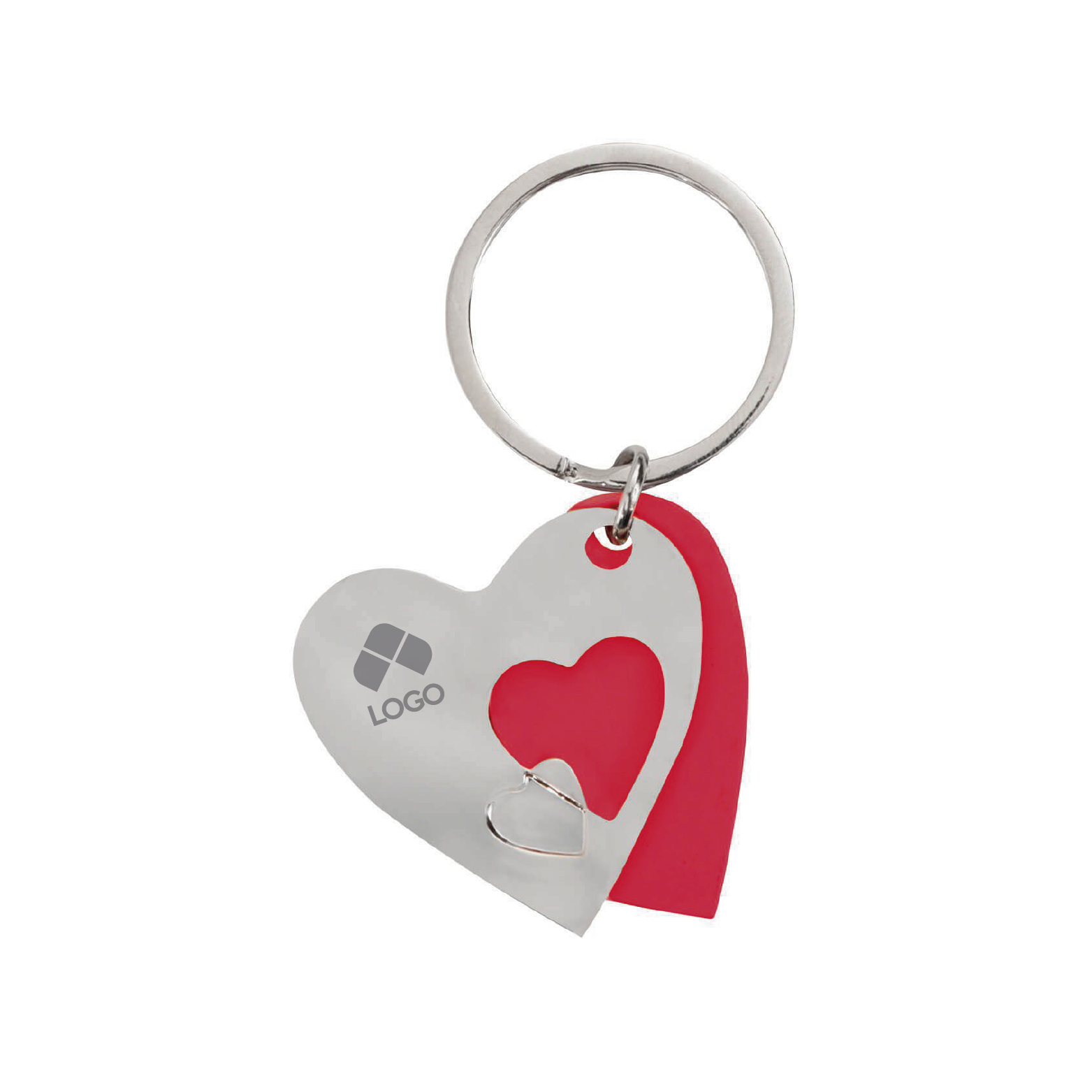 Observaciones: LLAVERO METALICO DOBLE EN FORMA DE CORAZON, PLACA SOLIDA Y SILUETA, CON ARILLO REFORZADO PARA COLGAR