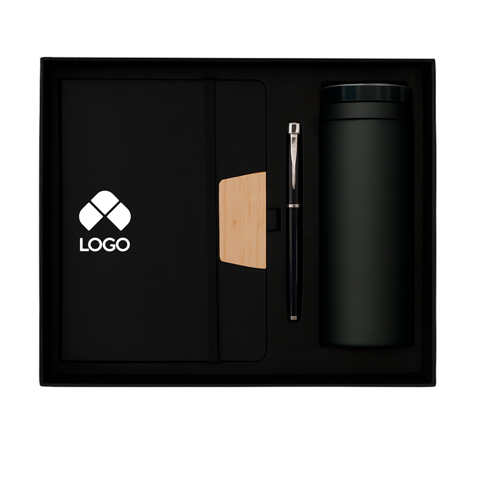 Observaciones: SET EJECUTIVO INCLUYE: LIBRETA DE POLIURETANO CON PORTADA QUE SIRVE COMO SOPORTE DE CELULAR, BOLIGRAFO Y TERMO CON ACABADO RUBBER