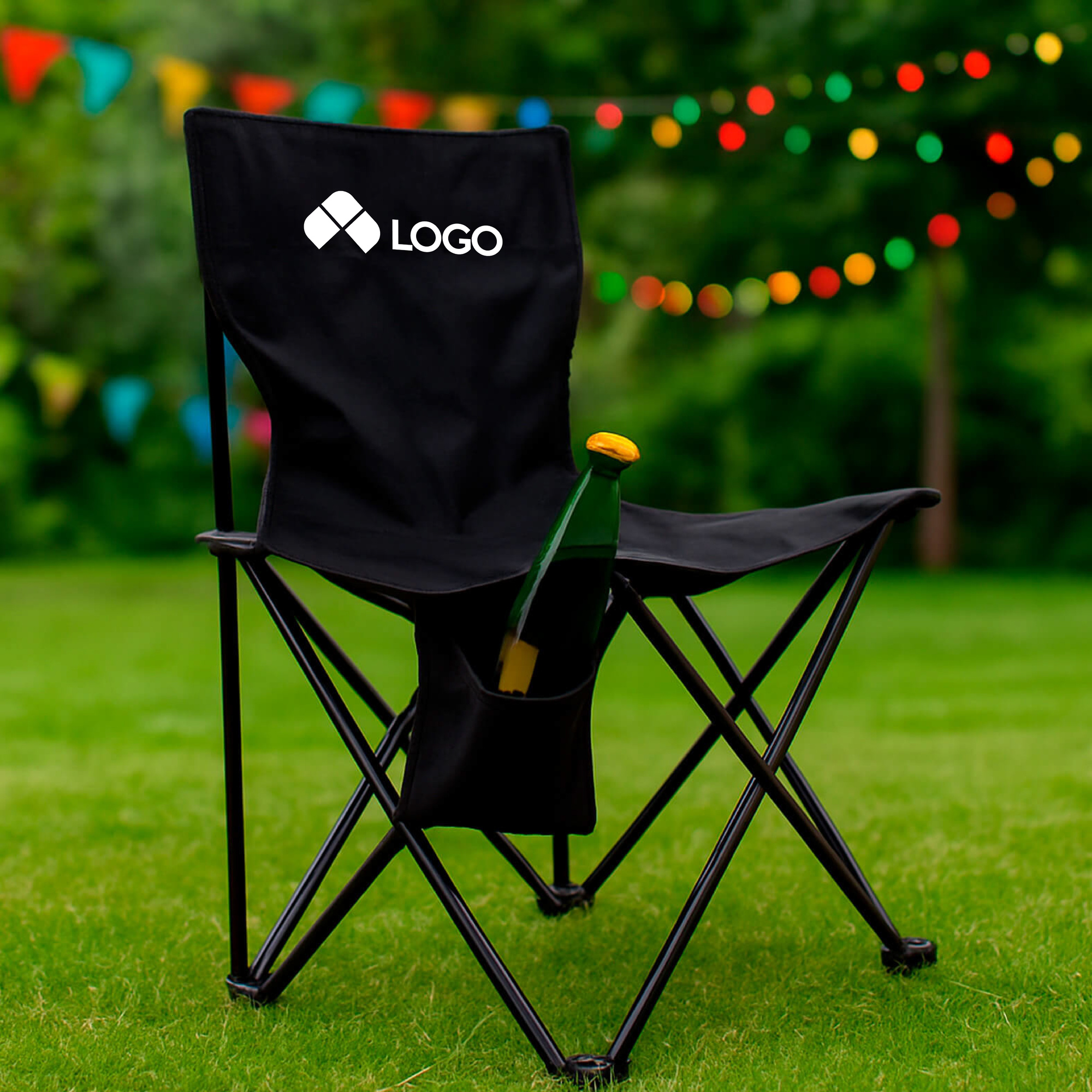 MINI SILLA PORTATIL PLEGABLE DE METAL CON ASIENTO Y RESPALDO DE POLIESTER. INCLUYE FUNDA CON ASA Y CORREA AJUSTABLE