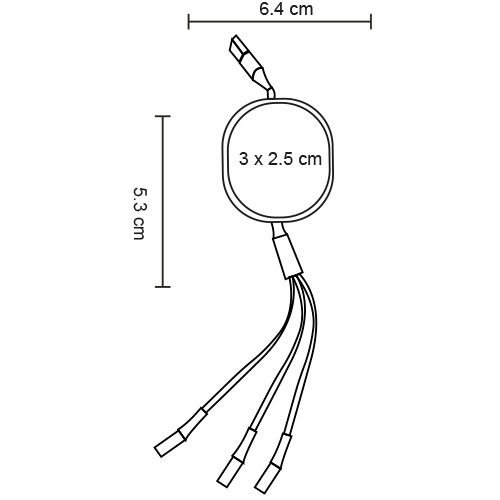 CARGADOR MULTIFUNCIONAL EXTENSIBLE OVALADO (115 MTS). CUENTA CON ENTRADA USB Y CONECTORES DE SALIDA MICRO USB, TIPO C Y LIGHTNING