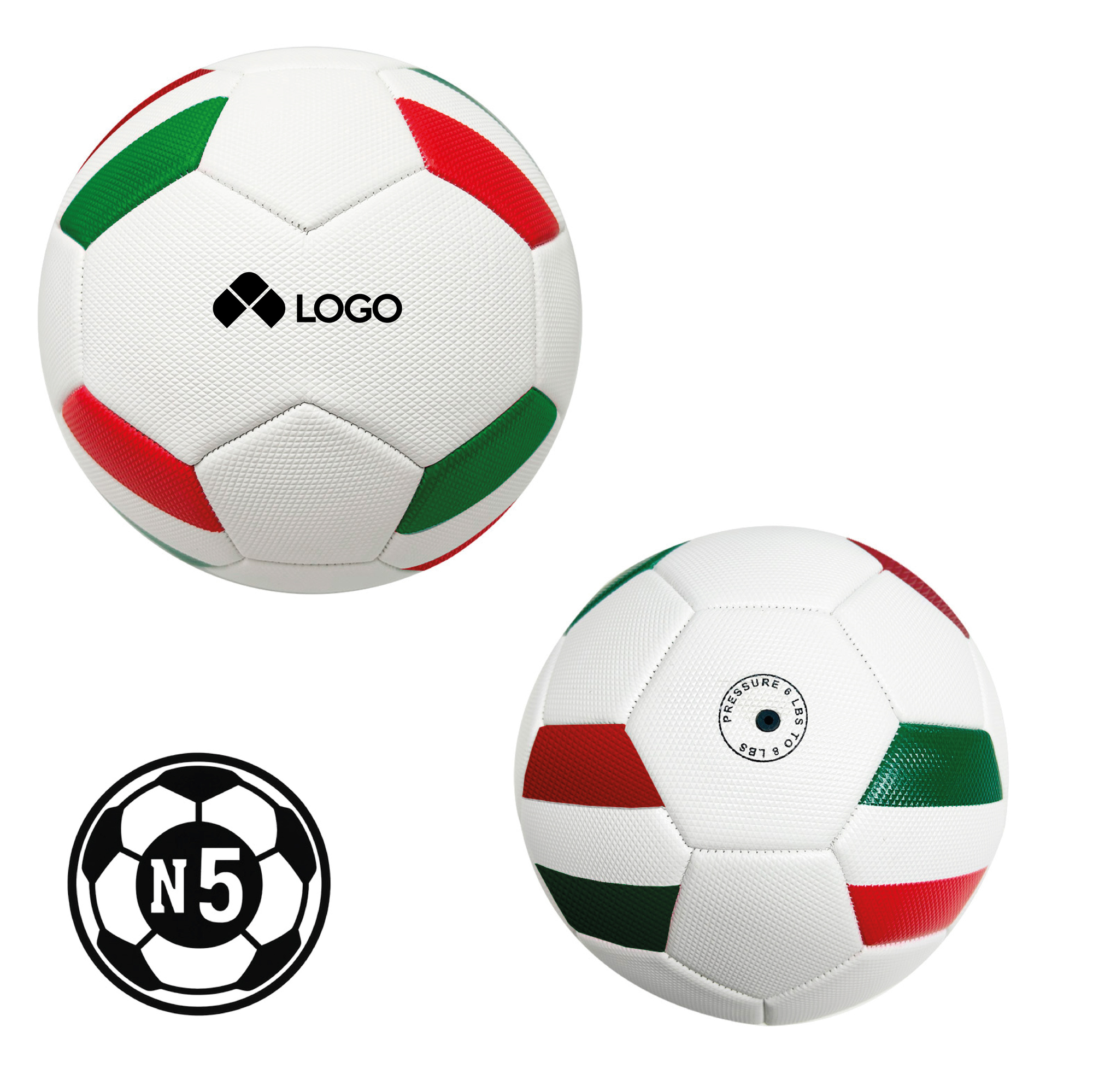 BALON DE FUTBOL TALLA 5, CON 32 GAJOS COSIDOS A MAQUINA (HEXAGONOS Y PENTAGONOS), ACABADO TEXTURIZADO E HILOS DE GOMA LAMINADOS PARA MAYOR RESISTENCIA. PRESION RECOMENDADA: ENTRE 6 Y 8 PSI