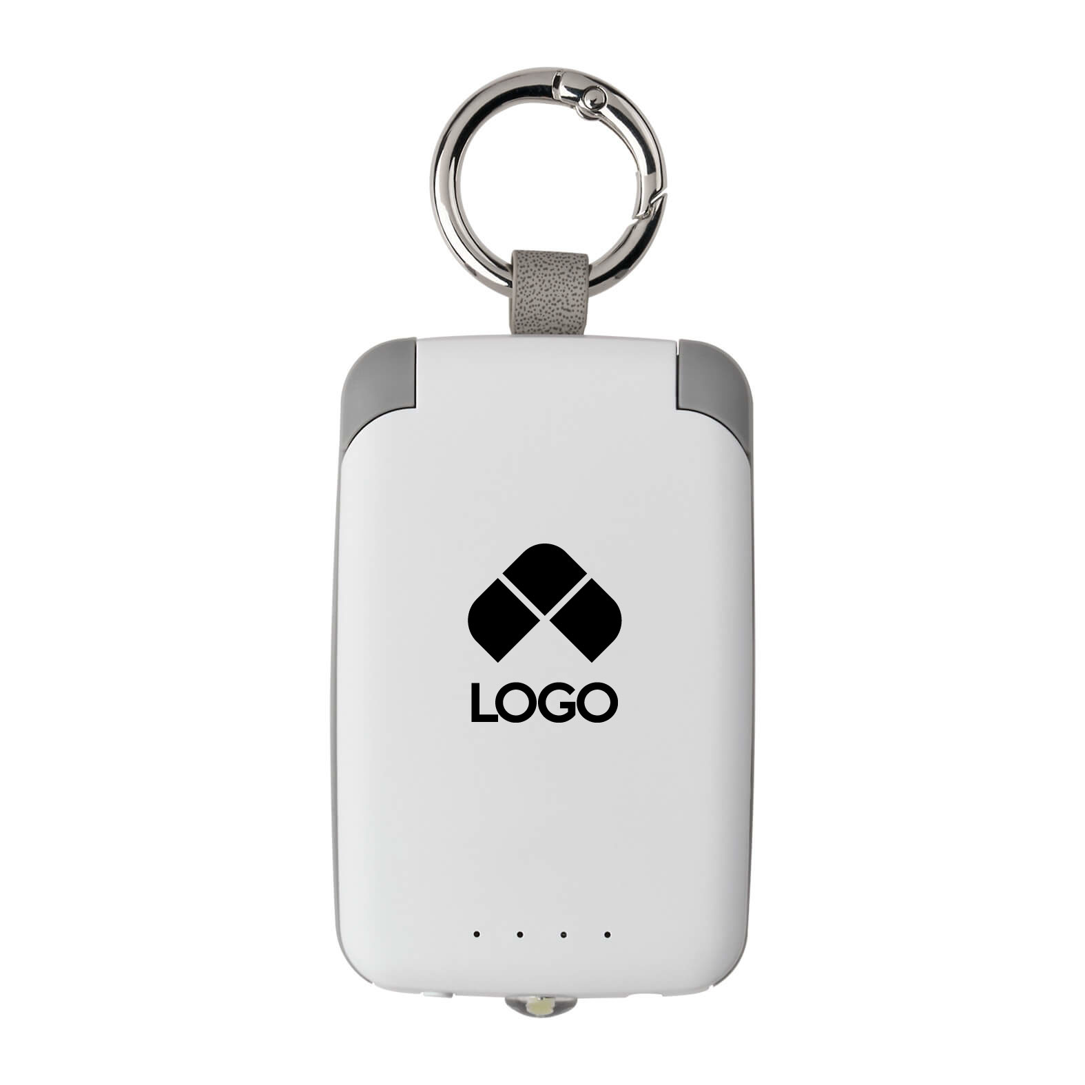 POWER BANK DE 2,000 MAH CON UN CABLE TIPO C Y UN CABLE LIGHTNING, LUZ DE DOS NIVELES, INDICADOR DE CARGA Y ARO METALICO CON GANCHO PARA MAYOR SUJECION. INCLUYE CABLE DE CARGA TIPO C