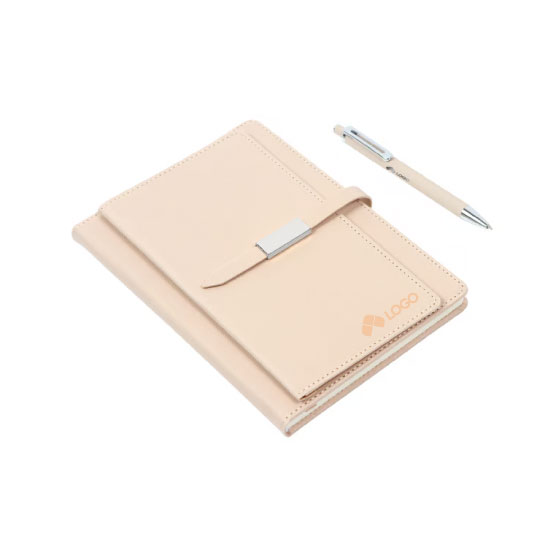 LIBRETA CON CUBIERTA DE PASTA DURA CUBIERTA EN CURPIEL, 80 HOJAS RAYADAS DE 80 G., LISTON SEPARADOR DE 6 MM Y DETALLES METALICOS EN COLOR PLATEADO. INCLUYE UN BOLIGRAFO CON CUERPO FABRICADO EN ALUMINIO DE ACCION DE BOTON, TINTA AZUL. ELEGANCIA Y FUNCIONALIDAD PARA EL DIA A DIA
