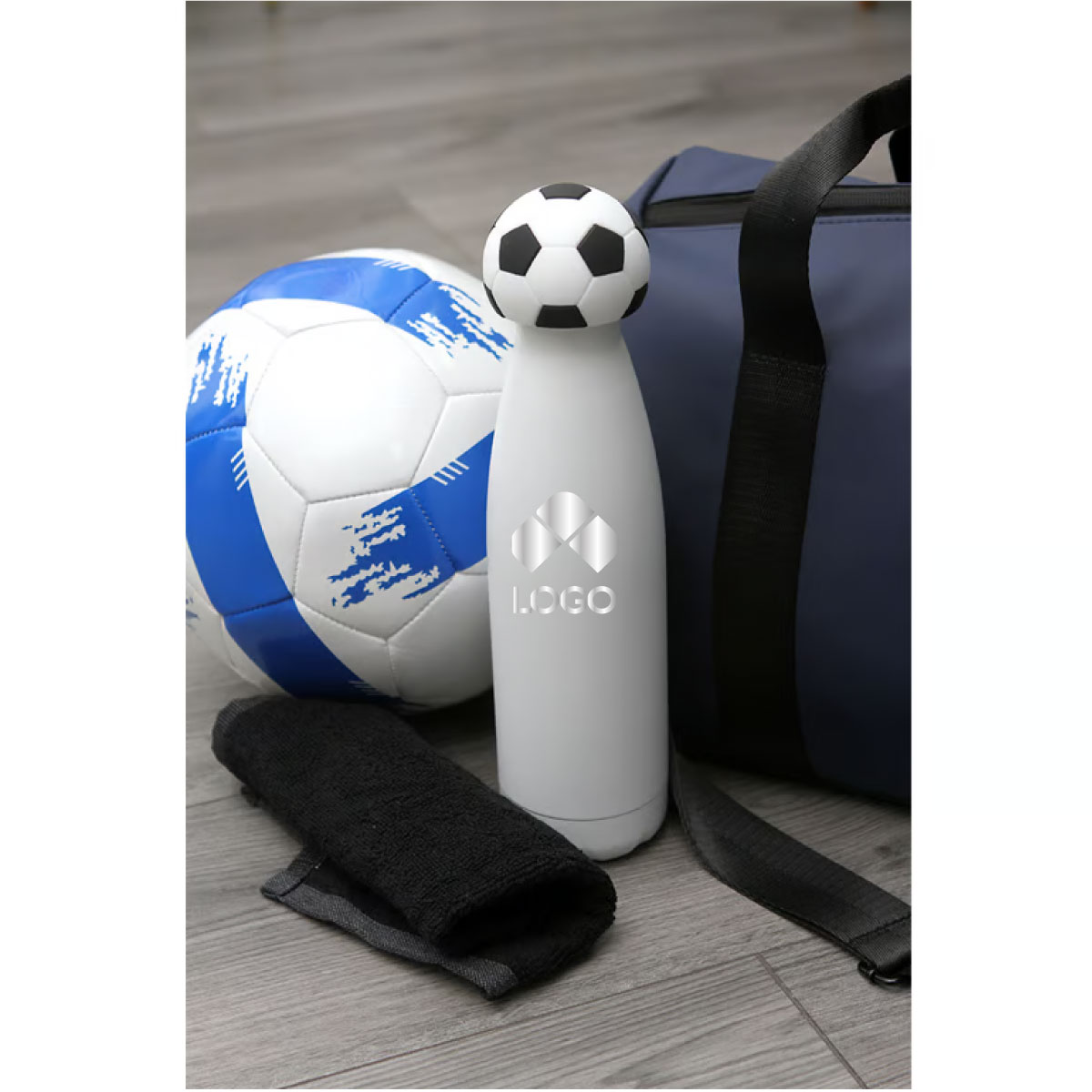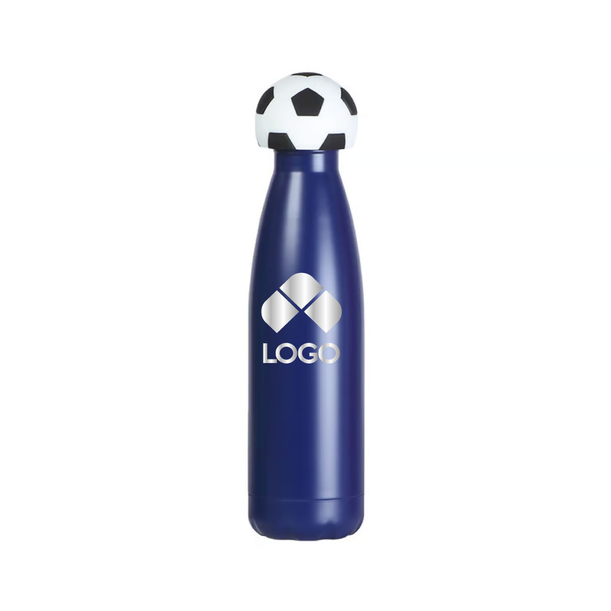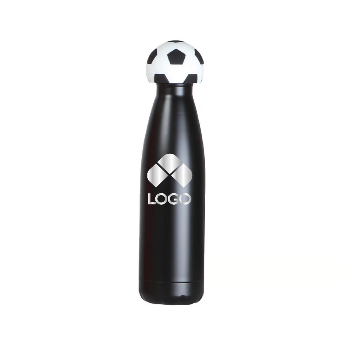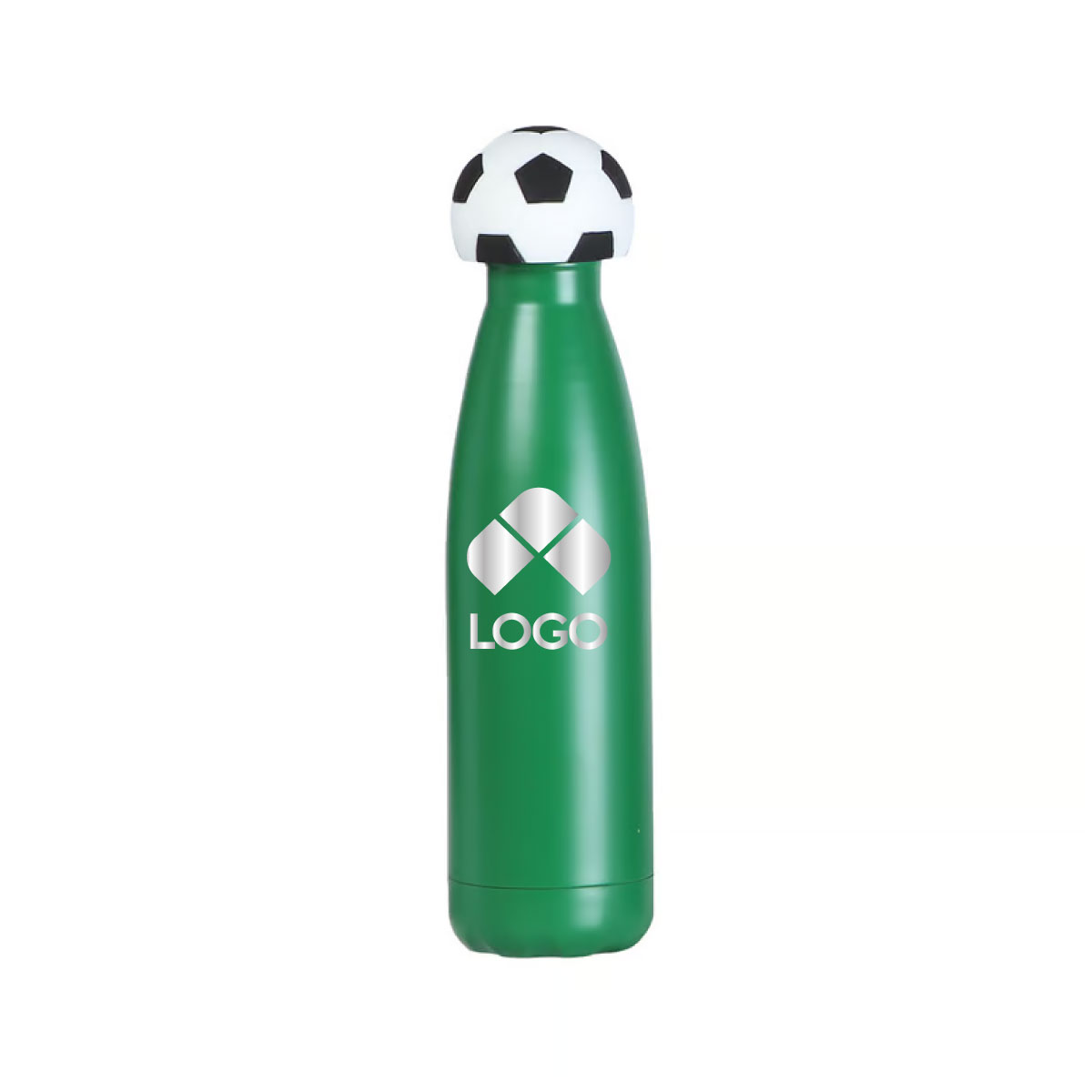 ESTA BOTELLA DE DOBLE PARED ESTA FABRICADA EN ACERO INOXIDABLE. SU CUERPO PRESENTA UN DISEÑO CILINDRICO DE SUPERFICIES LISAS Y BORDES FIRMES. CUENTA CON UNA CAPACIDAD DE 500 ML, OFRECIENDO UN FORMATO COMPACTO Y ESTABLE PARA CONTENER LIQUIDOS. INCLUYE UNA TAPA QUE INCORPORA UN ACCESORIO FABRICADO EN SILICON CON FORMA DE BALON DE FUTBOL, INTEGRADO DE MANERA FIRME AL CONJUNTO. EL DISEÑO COMBINA MATERIALES RESISTENTES CON UN ACABADO FUNCIONAL Y DECORATIVO