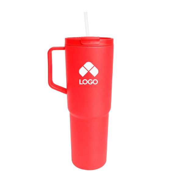 TERMO DE PLASTICO DE UNA SOLA PARED CON ASA, TAPA DE CIERRE A PRESION, BOQUILLA DE SEGURIDAD Y POPOTE